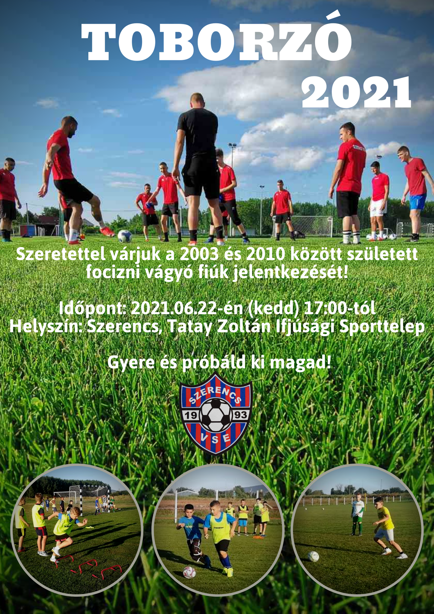 Szerencs Város Sportegyesületének Labdarúgó Szakosztálya meglévő csapatainak fejlesztésére toborzót szervez, melyre várják a 2003 és 2010 között született fiúk jelentkezését, akik barátságban vannak a labdával, szeretik a rendszeres mozgást és szívesen versenyeznének egy jó közösségben.