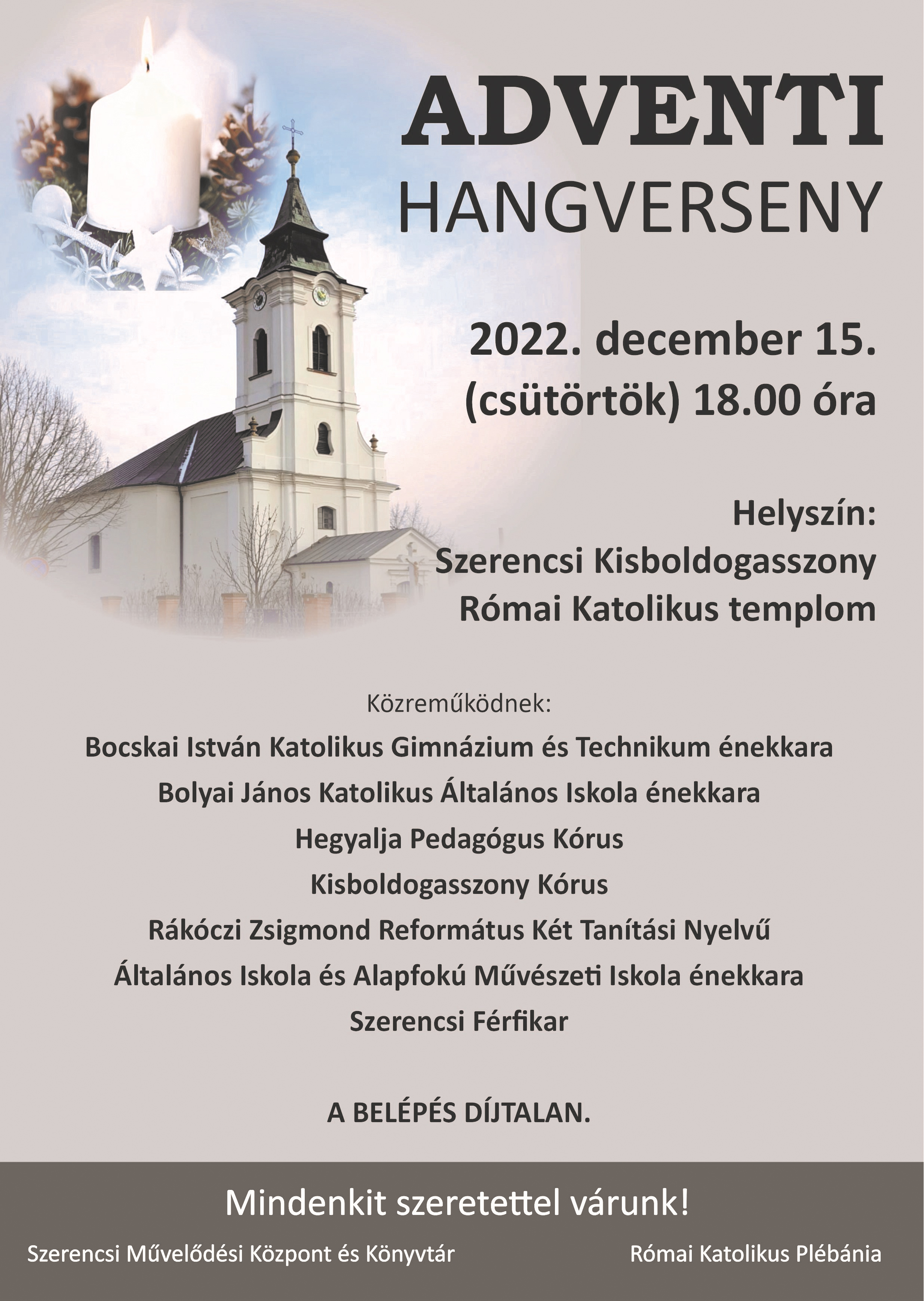Az ünnepvárás hangulatát szeretnék fokozni a város énekkarai 2022. december 15-én, csütörtökön 18 órától a szerencsi Kisboldogasszony római katolikus templomba szervezett adventi koncerttel.