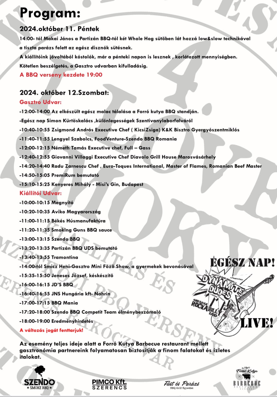 A rendezvény 2024. október 11-én délutántól indul, amelynek egyik fő látványossága egy egészben megsütött sertés lesz, melyet az érdeklődők másnap, október 12-én délben kóstolhatnak meg. Szombaton egész nap szakmai előadások, beszélgetések, bemutatók színesítik a versenyt, amelyre 16 csapat nevezett.
