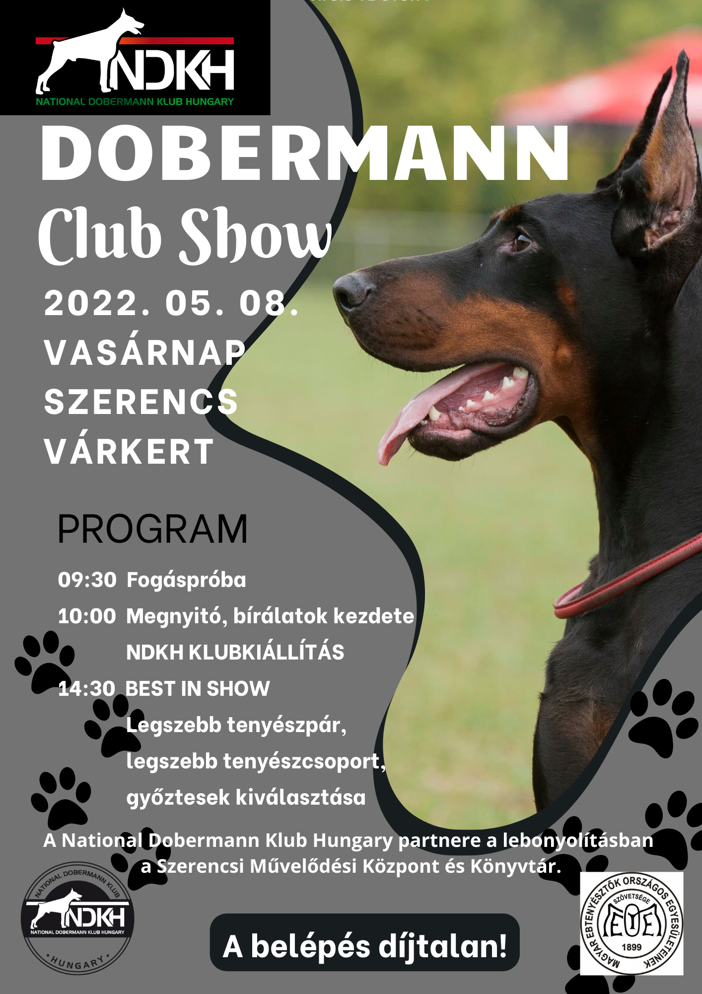 A National Dobermann Klub Hungary rendezvényére várják az érdeklődőket 2022. május 8-án, vasárnap a szerencsi Rákóczi-vár kertjébe. További részletek a mellékelt plakáton.