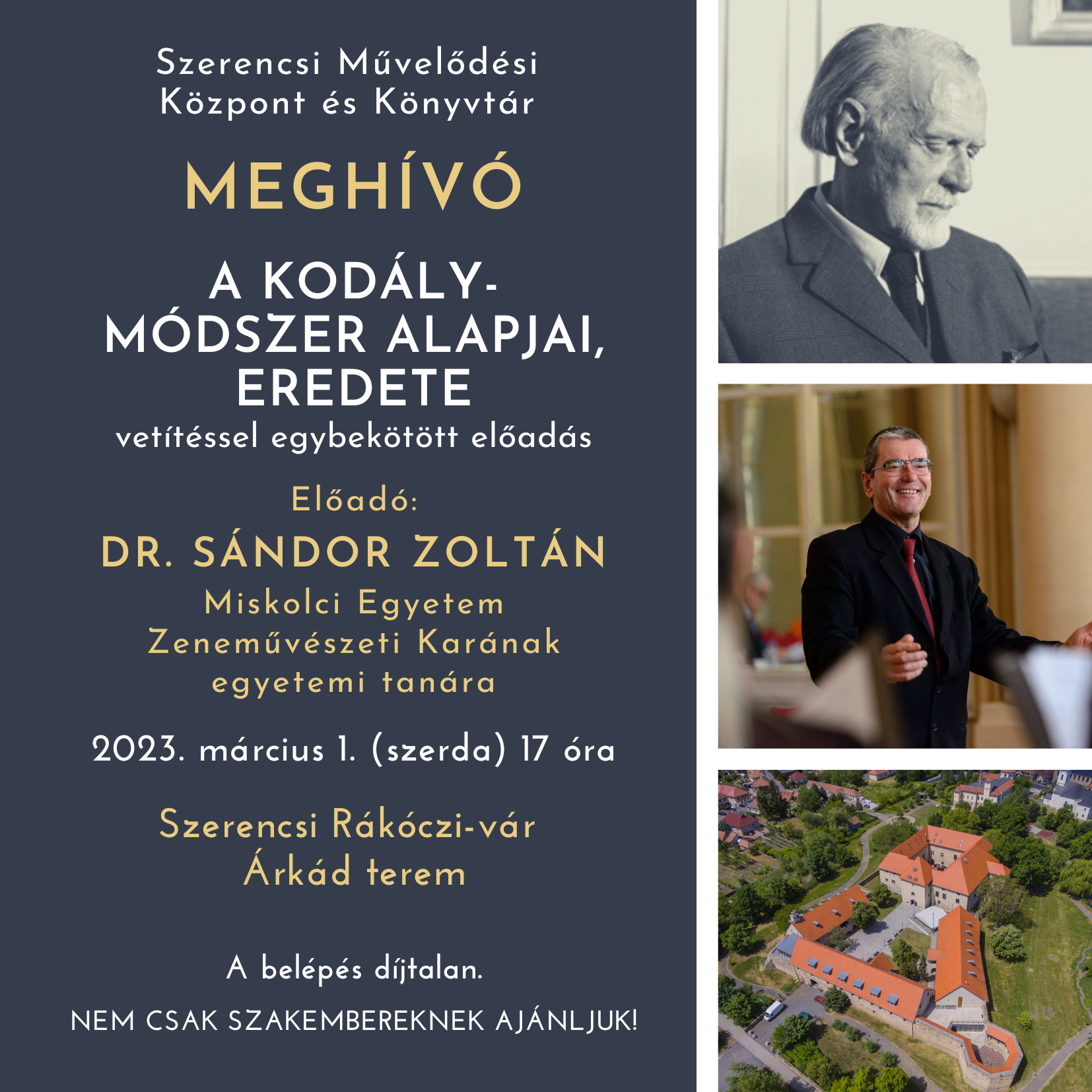 Dr. Sándor Zoltán, a Miskolci Egyetem Zeneművészeti Karának egyetemi tanára tart előadást a Kodály-módszer eredetéről, alapjairól 2023. március 1-jén, szerdán 17 órától a Rákóczi-vár Árkád termében.