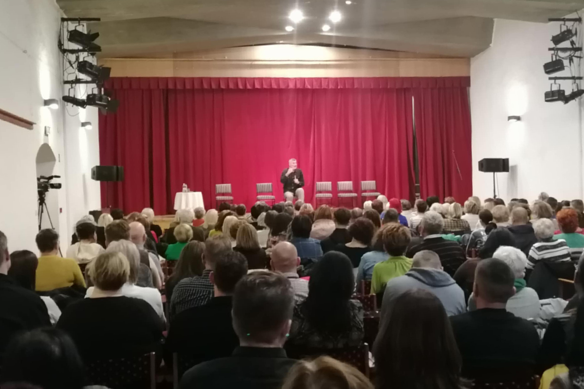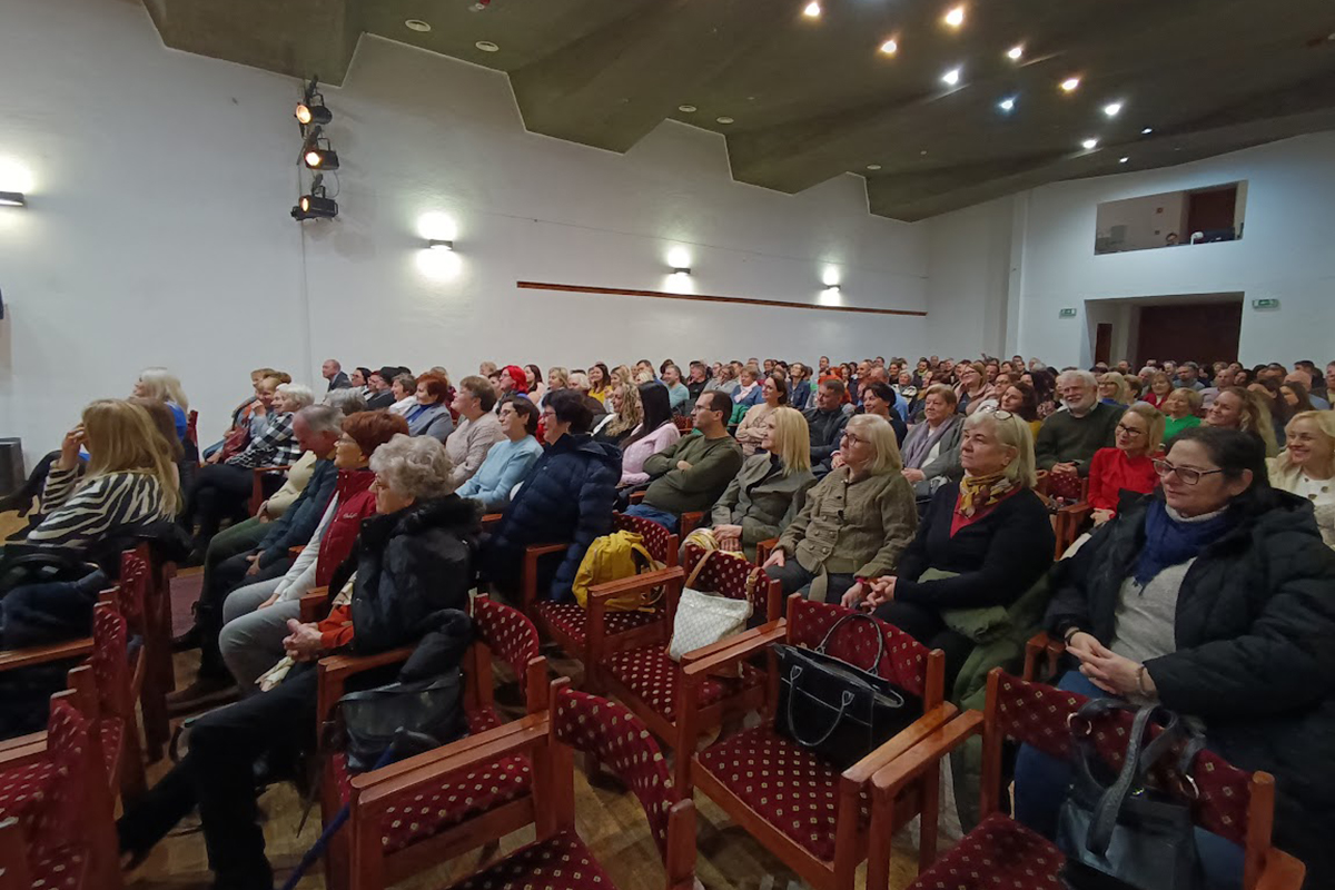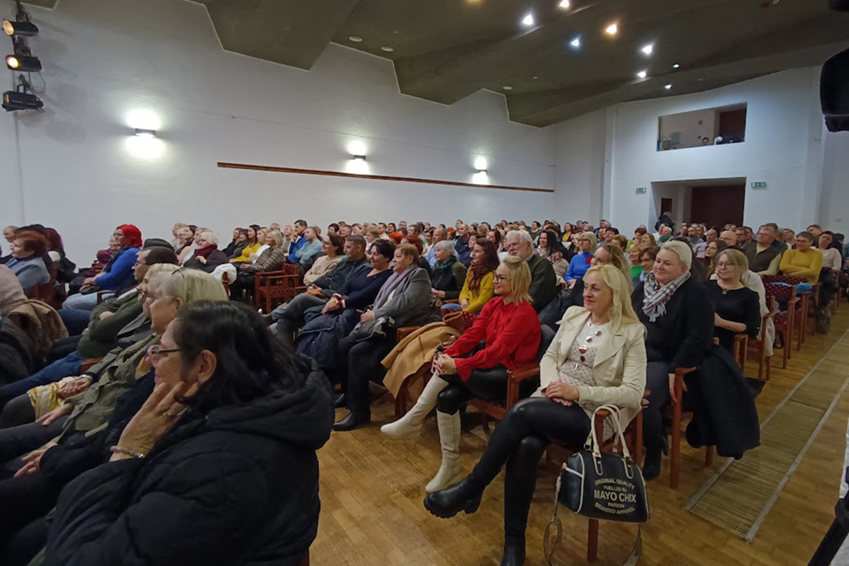 2024. december 9-én a Rákóczi-vár lovagtermében Pál Feri atya előadását volt szerencsénk meghallgatni a változásról, a fordulatról. Apró, mindennapi történéseken keresztül mutatta meg: nagyon fontos, hogy változzunk, változtassunk szokásainkon a párunk, szerettünk kedvéért. Egy sajátos szék-rituáléval érzékeltette az egyes gondolkodásmódokat, a szenvedő ember lelki reakcióinak egyes fázisait. Egyik székről a másikra átülve mutatta be, hogyan jutunk el a tagadáson, dühön, alkudozáson, reménykedésen át a megbékélést hozó elfogadásig. Néha meg kell változtatni gondolkodásmódunkat és bele kell élni magunkat a másik helyébe!