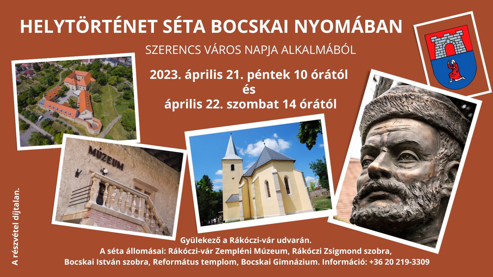 Szerencs Város Napja szorosan kötődik Bocskai István személyéhez. Ezért a 2023. évi városnapi programok sorában helytörténeti sétát szerveznek, amelyen a Bocskaihoz kötődő emlékeket keresik fel. A séta április 21-én, pénteken délelőtt 10 órától, illetve április 22-én, szombaton délután 14 órától indul a Rákóczi-várból.