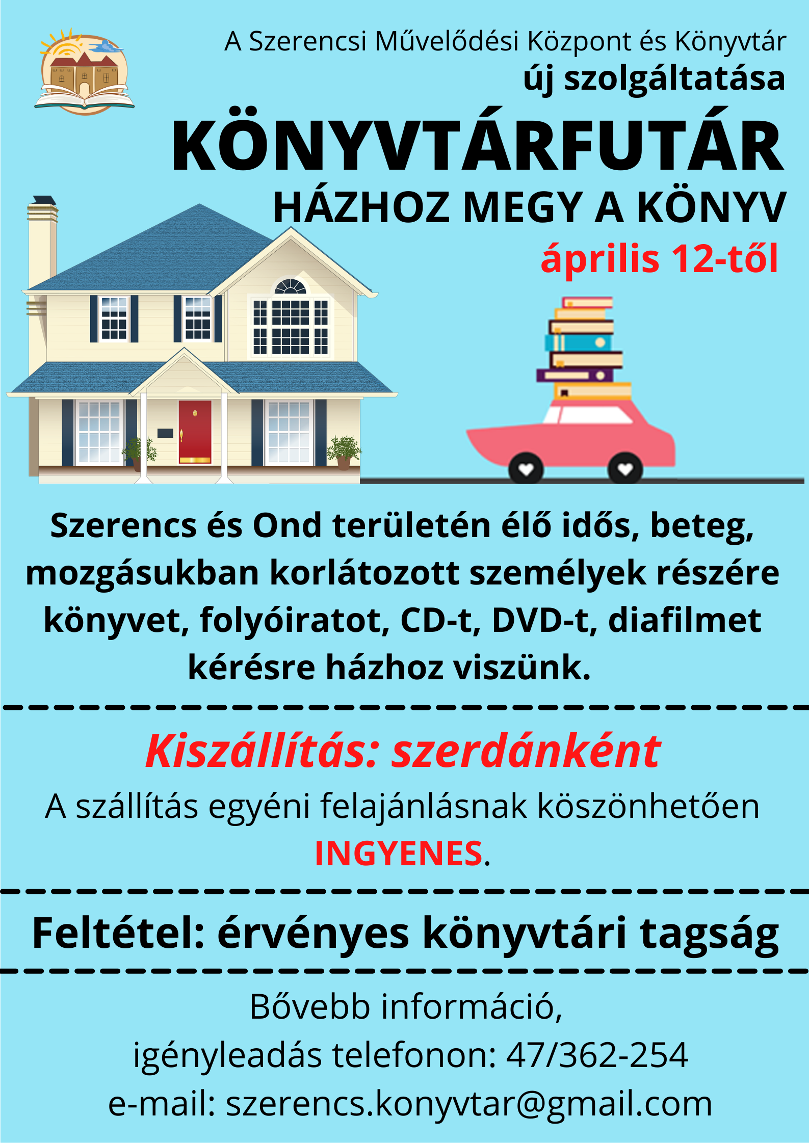 Egyéni felajánlásnak köszönhetően a könyvtár KÖNYVTÁRFUTÁR szolgáltatása INGYENES!