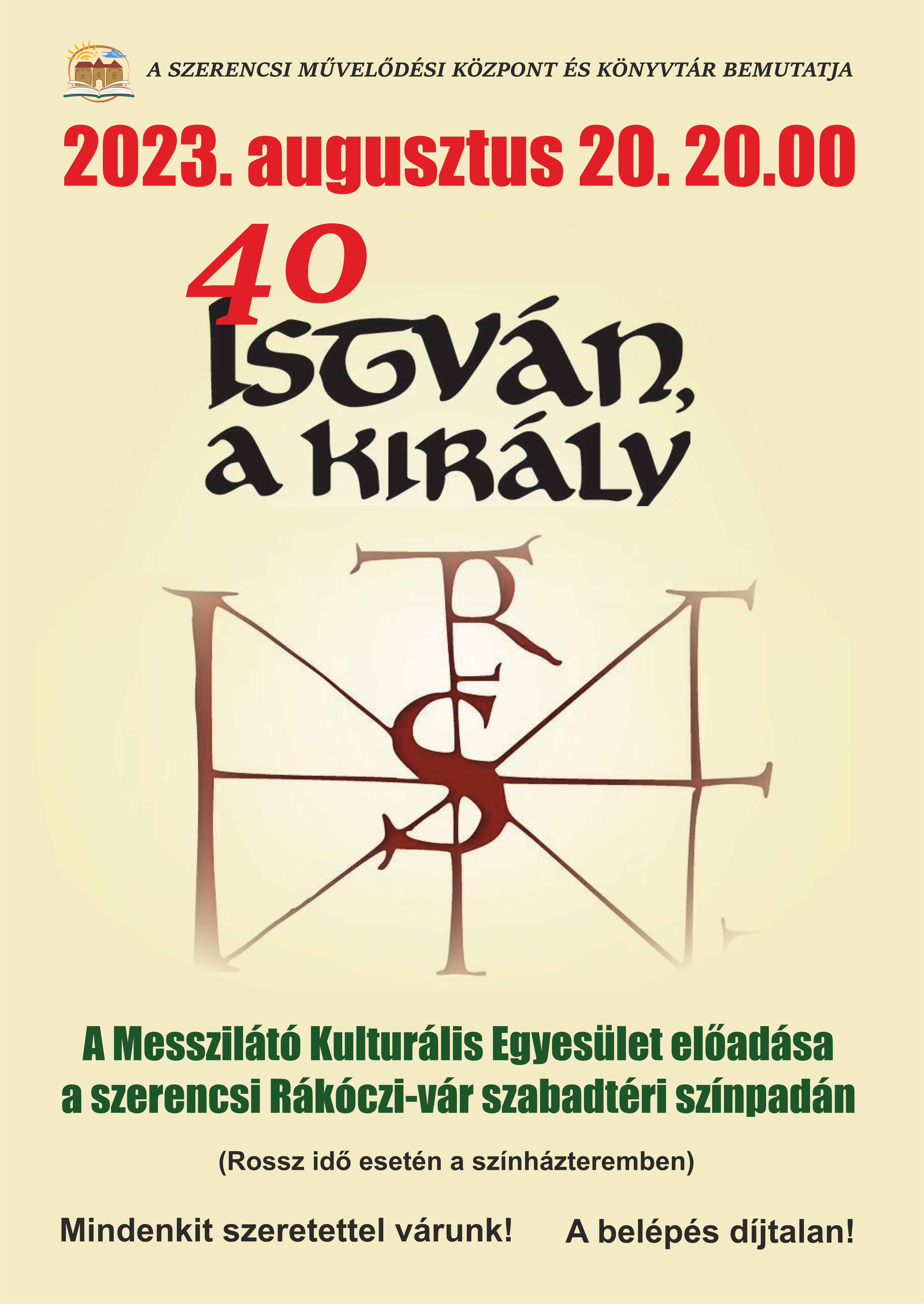 A tiszalúci Messzilátó Kulturális Egyesület előadásában láthatja a közönség az idén bemutatásának 40. évfordulóját ünneplő István, a király című rockoperát.