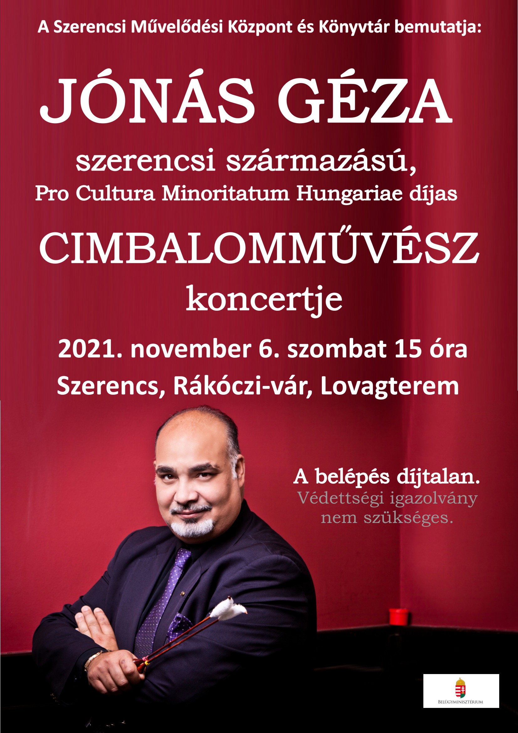 A szerencsi származású Jónás Géza cimbalomművész ad koncertet 2021. november 6-án, szombaton 15 órától a szerencsi Rákóczi-vár lovagtermében. A belépés díjtalan.