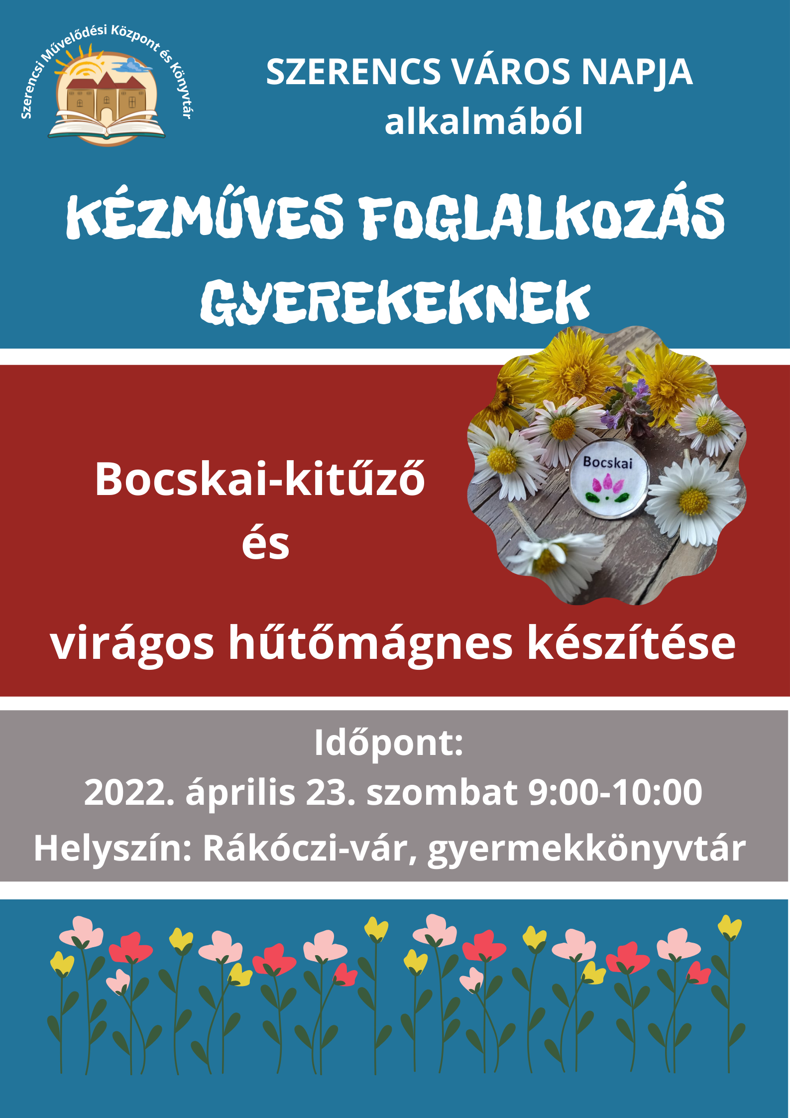 Szerencs város napján kézműves foglalkozás várja a gyerekeket a városi könyvtár gyermekkönyvtárában, 2022. április 23-án szombaton. A foglalkozáson 9.00 órától 10.00 óráig lehet részt venni.