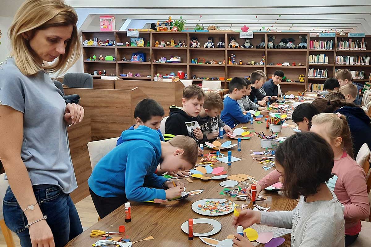 Szerencsi Művelődési Központ és Könyvtár – A Bolyai János Katolikus Általános Iskola egyik 3. osztálya, Visóczki Zsanett tanító néni kíséretében húsvéti foglalkozáson járt nálunk. Felelevenítettük a néphagyományokat: locsolkodás, tojásfestés, ételek... Természetesen alkottunk is.