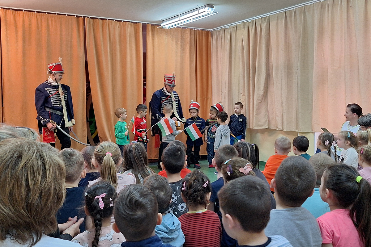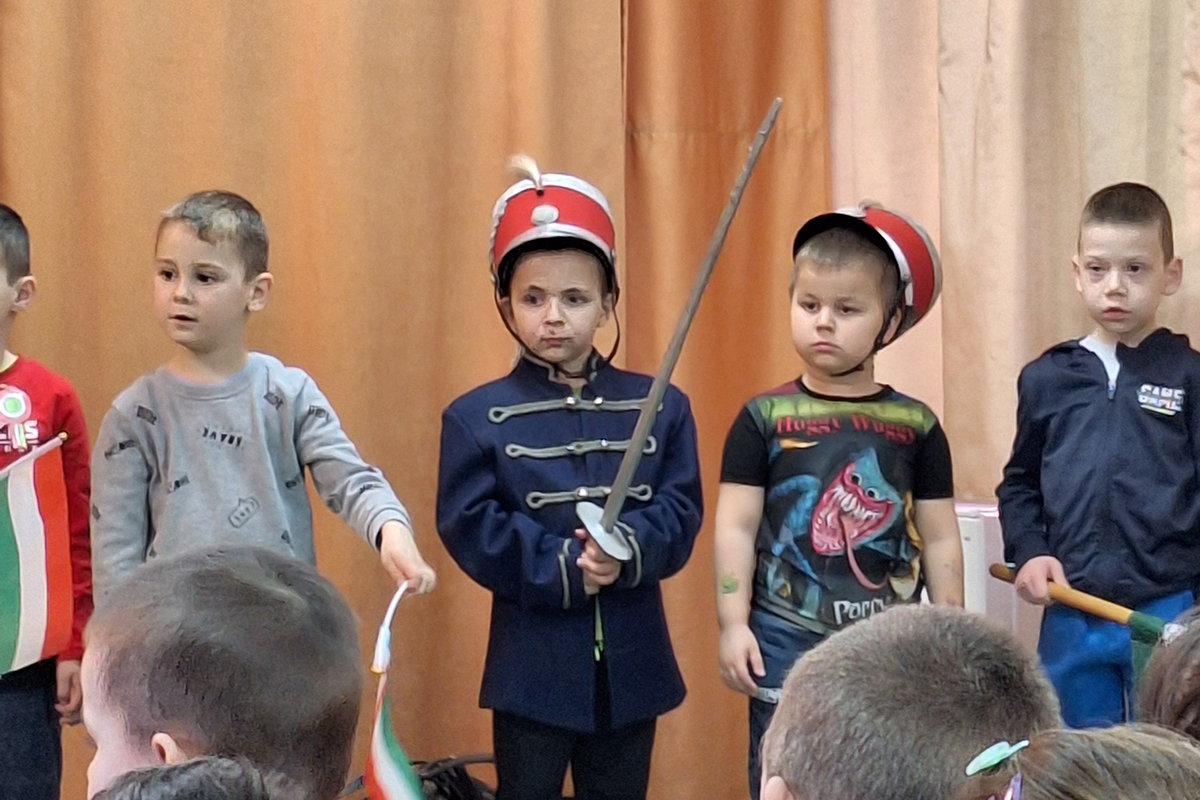 Örömmel próbálták fel a gyermekek a mentét, kardot foghattak kezükbe, faparipán „lovagoltak”, nemzeti színű lobogót lobogtattak és büszkén vették fel a huszár csákót.