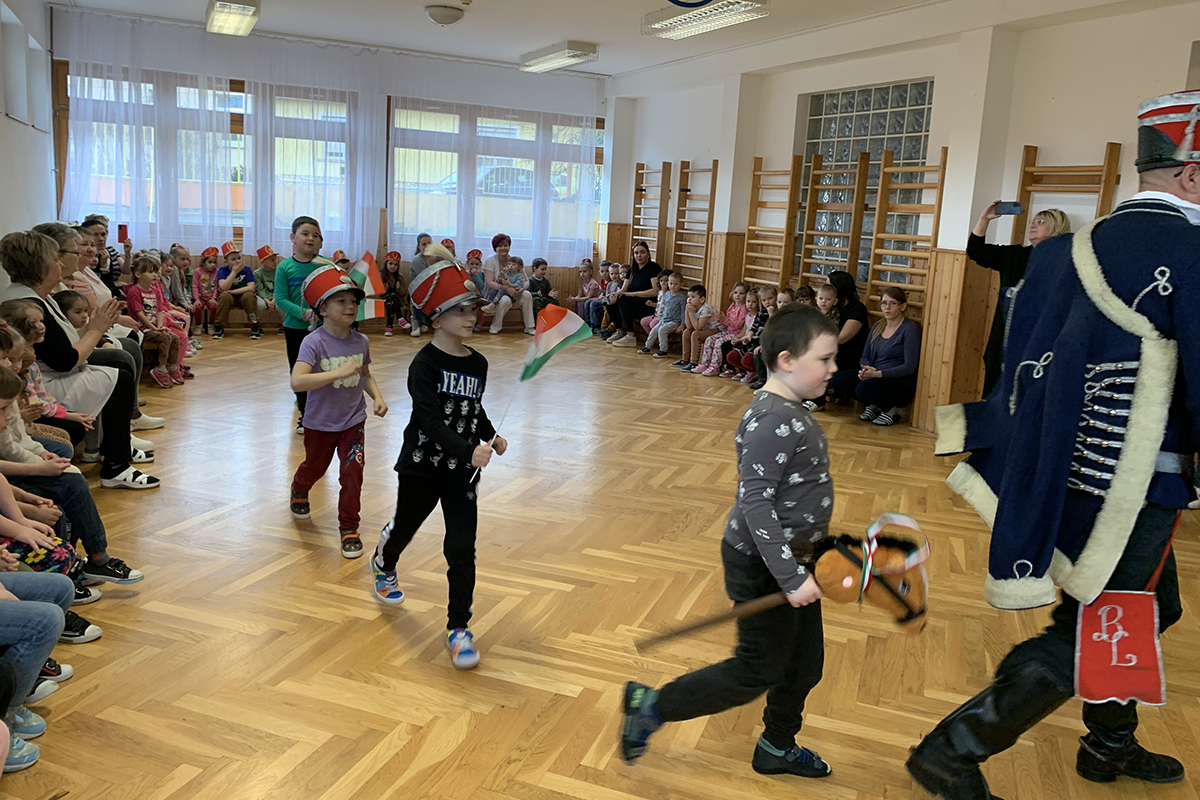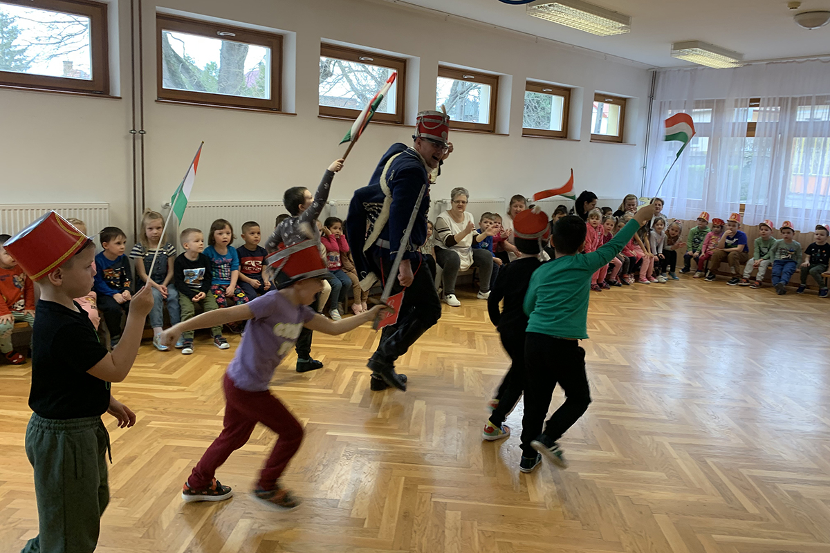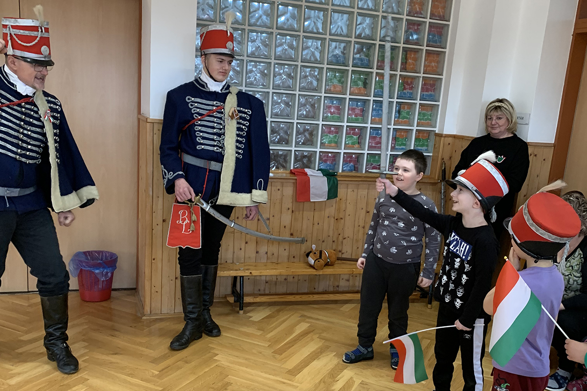 Helyette hozzánk jöttek el a huszárok korhű jelmezbe és interaktív foglalkozás keretén belül emlékeztünk meg a 48-as évfordulóról.