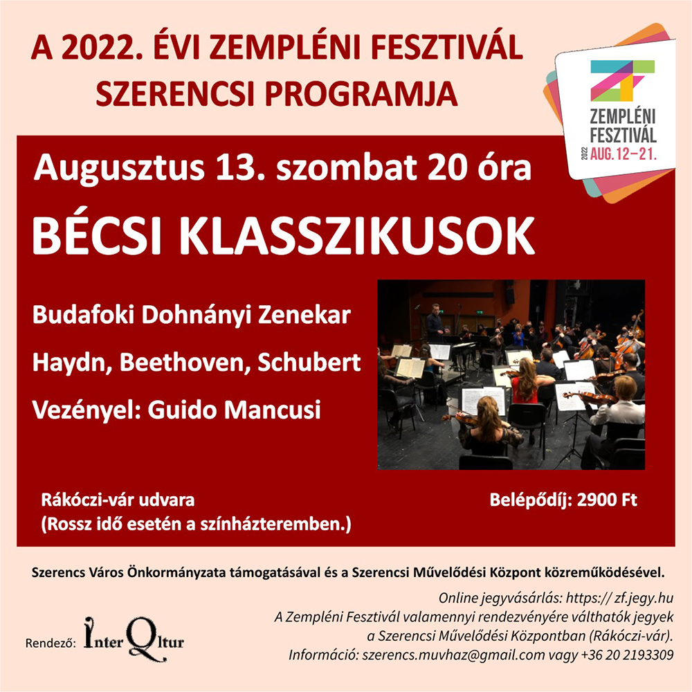 A Zempléni Fesztivál valamennyi (nem csak szerencsi) eseményére válthatók jegyek a Szerencsi Művelődési Központban. Információ: +36 20 2193309.
