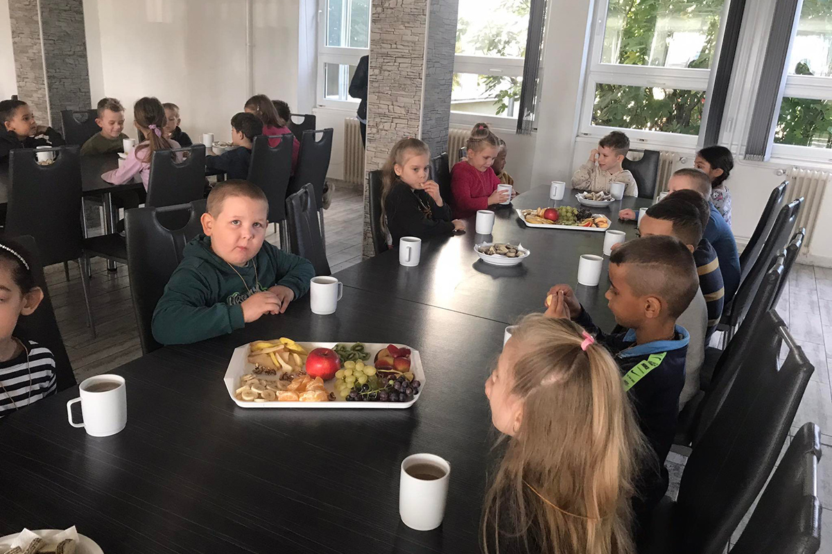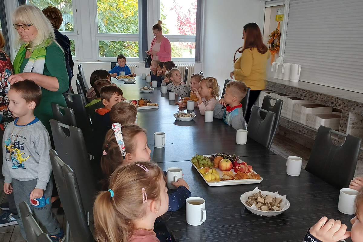 Ezt követően őszi gyümölcs és ivólé került az asztalra, amit jóízűen fogyasztottak a gyermekek.