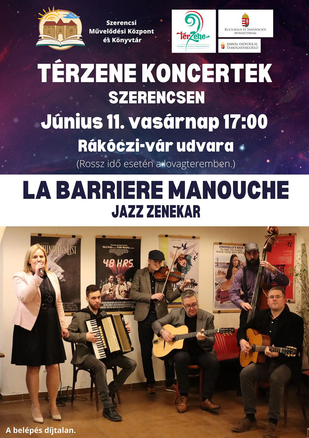 A La Barriere Manouche jazz zenekar a Rákóczi-vár udvarán.
