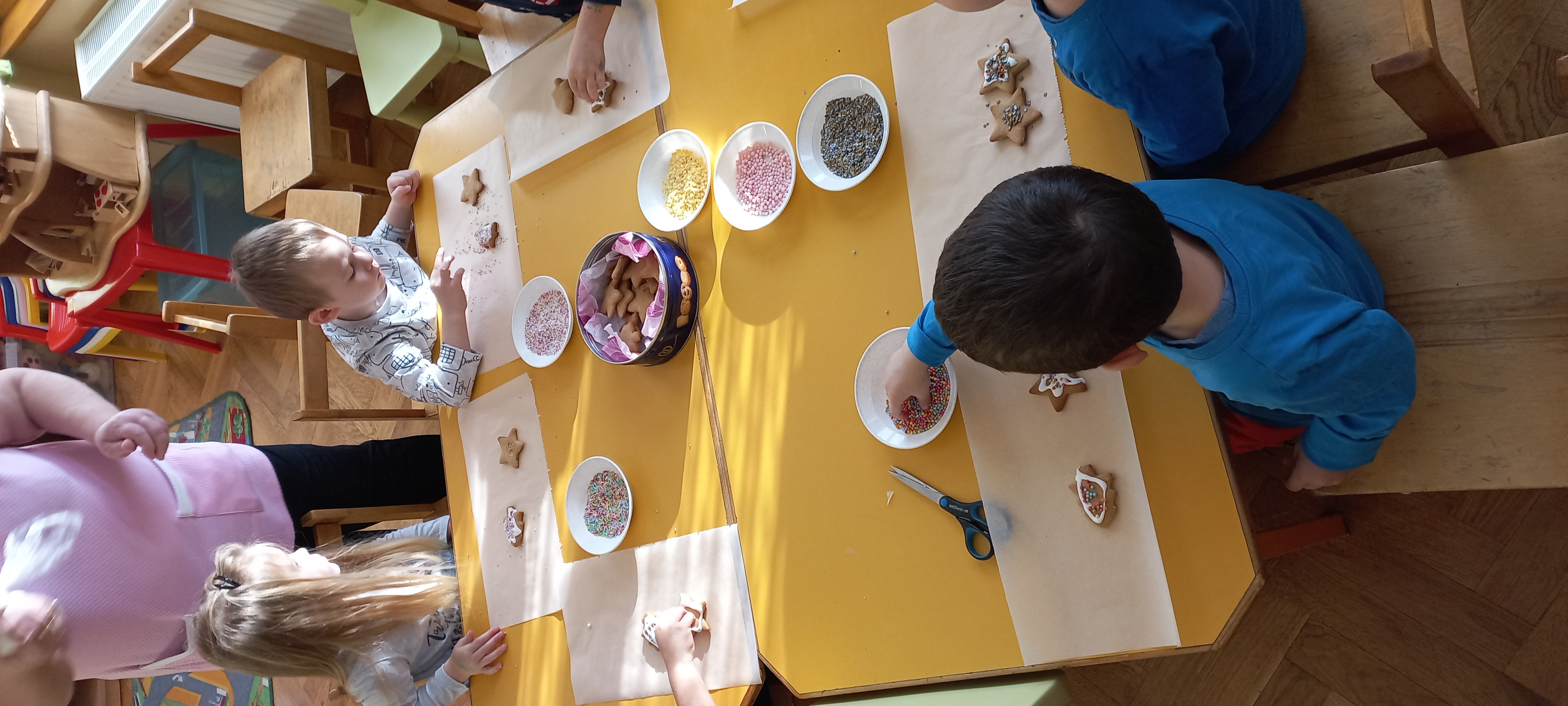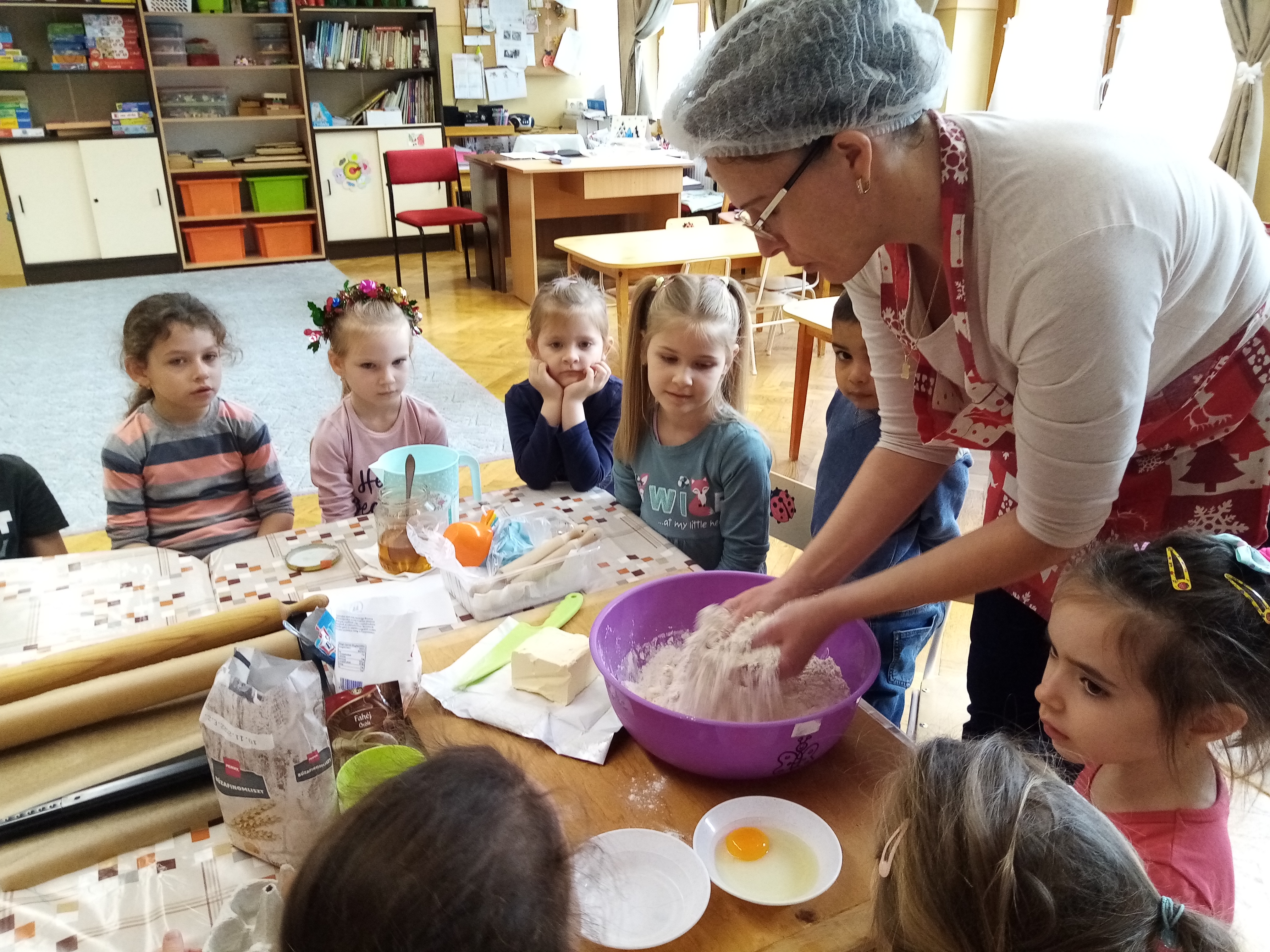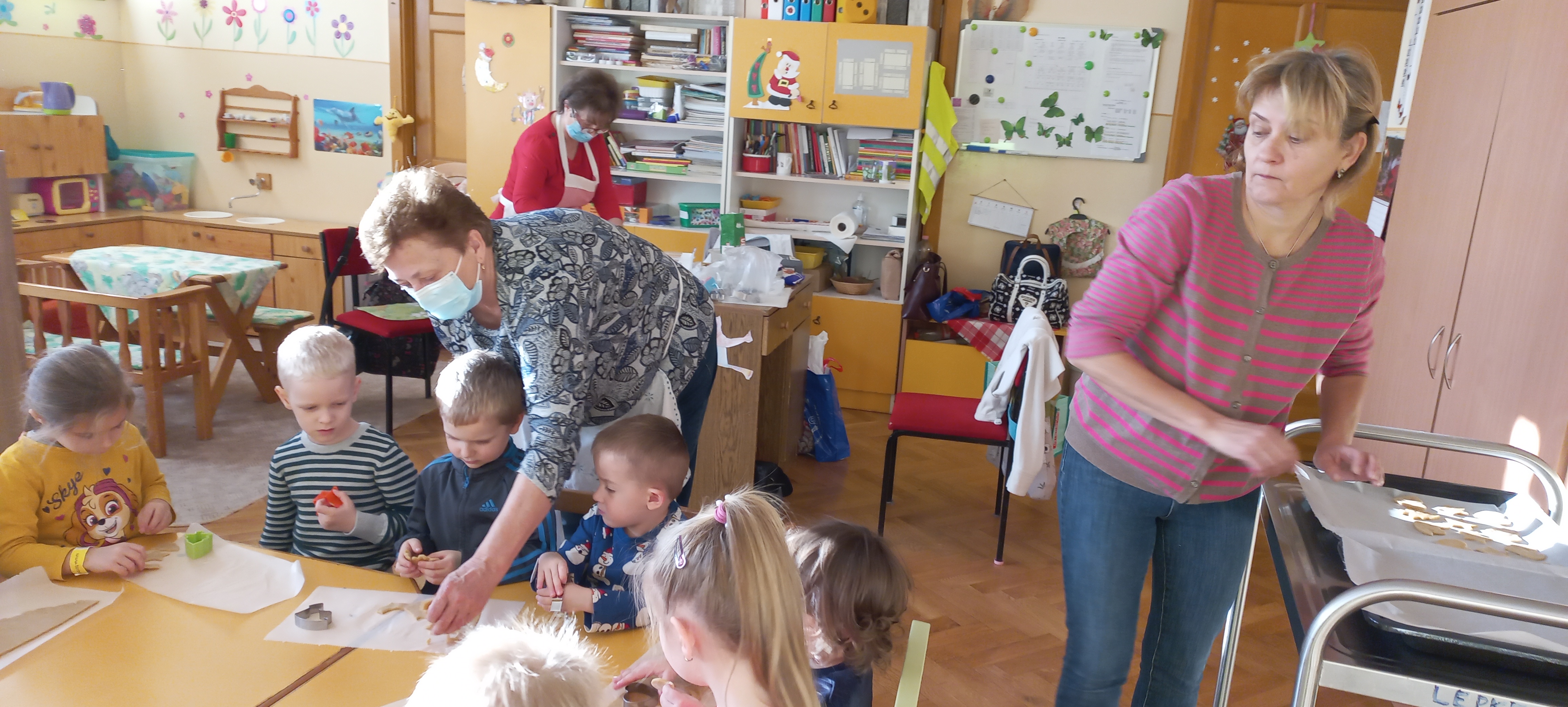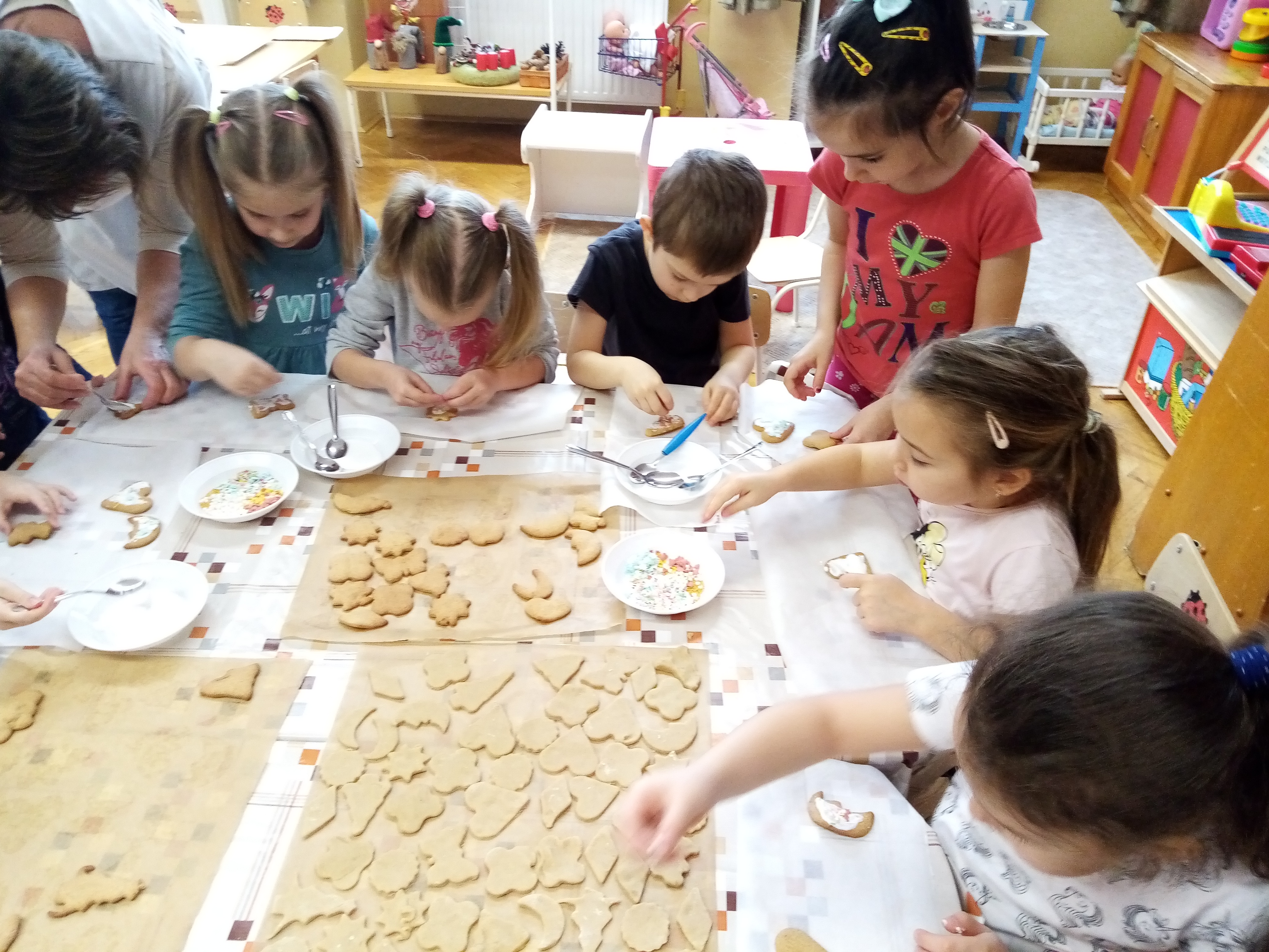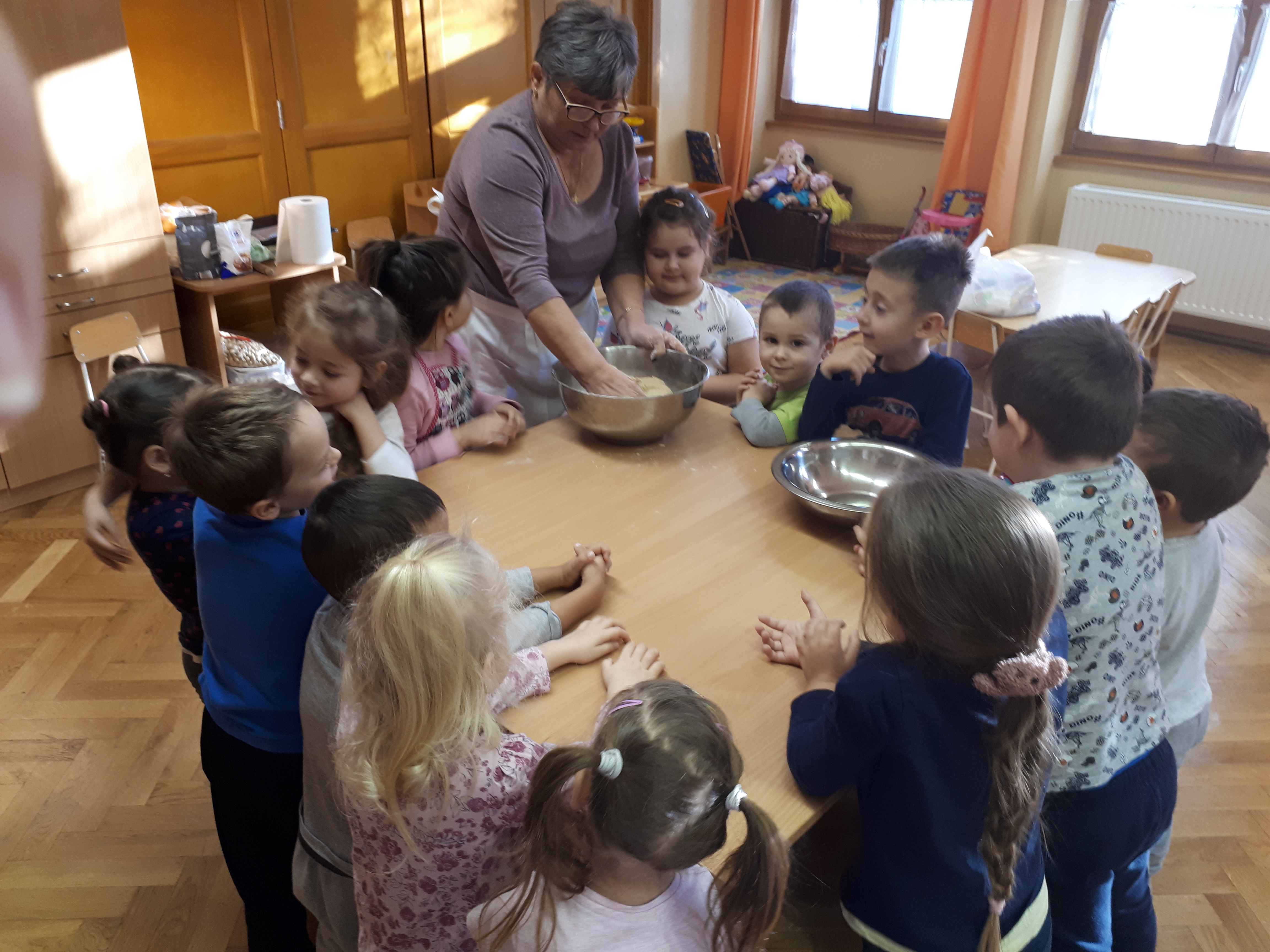 A karácsonyi előkészületekhez hagyományként kapcsolódik a mézes kalács sütés nagymamák bevonásával. E tevékenység keretén belül aktív részesei lehetnek a gyermekek a sütemény készítés folyamatának: nyújtanak, szaggatnak, díszítenek. Örömmel végzik ezt a tevékenységet és jó ízűen kóstolják meg az általuk összeállított süteményt, melyet az ünnep körhöz kapcsolódóan fenyőfa díszítéshez használunk fel.