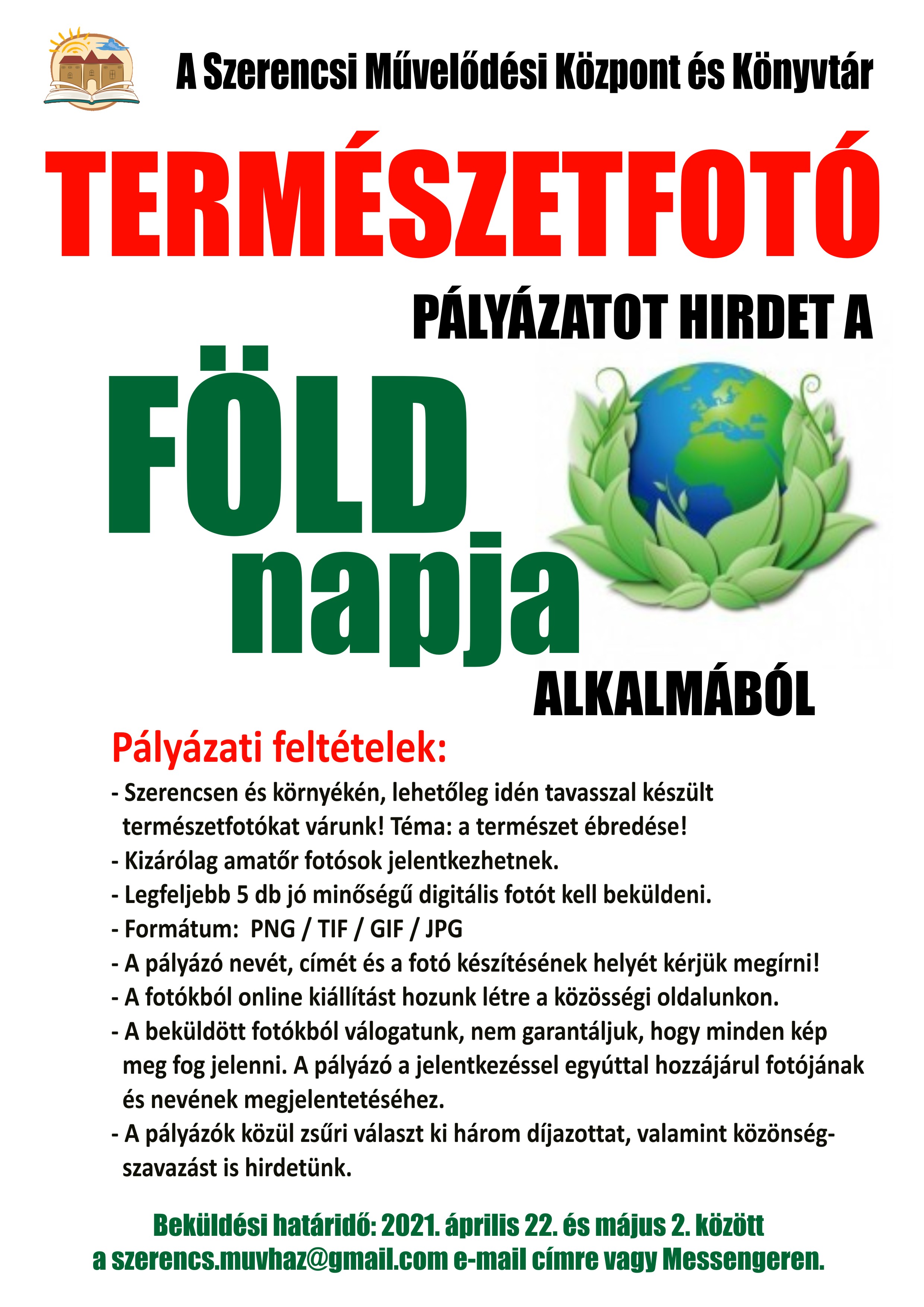 Amatőr fotósok részére hirdetett természetfotó pályázatot a Szerencsi Művelődési Központ és Könyvtár április 22., vagyis a Föld napja alkalmából.