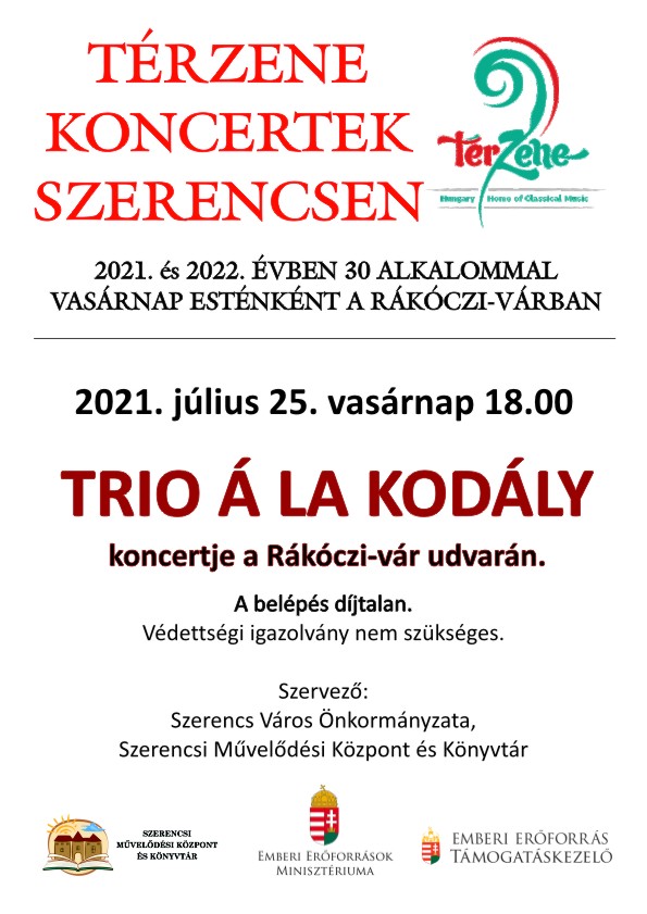 A Trio á la Kodály koncertjével folytatódik a térzene sorozat a Rákóczi-várban 2021. július 25-én.