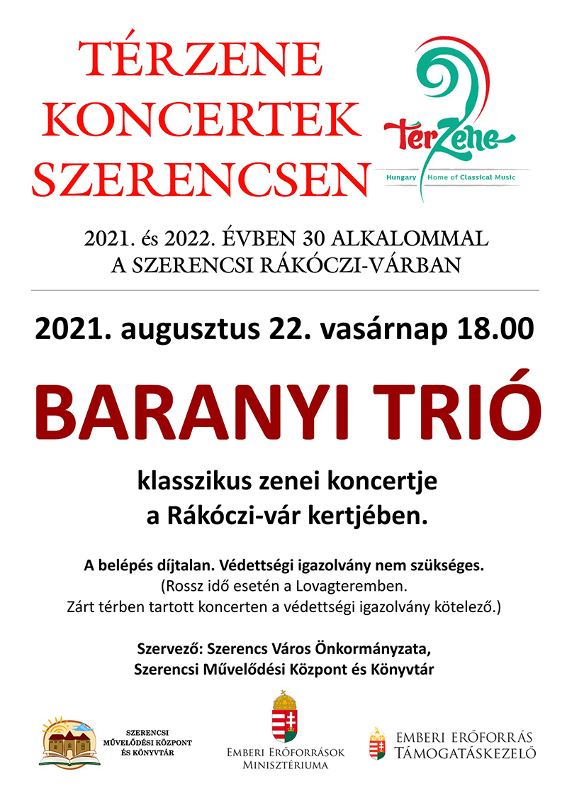 Egy klasszikus zenei trióval folytatódik a „Térzene koncertek Szerencsen” sorozat 2021. augusztus 22-én.