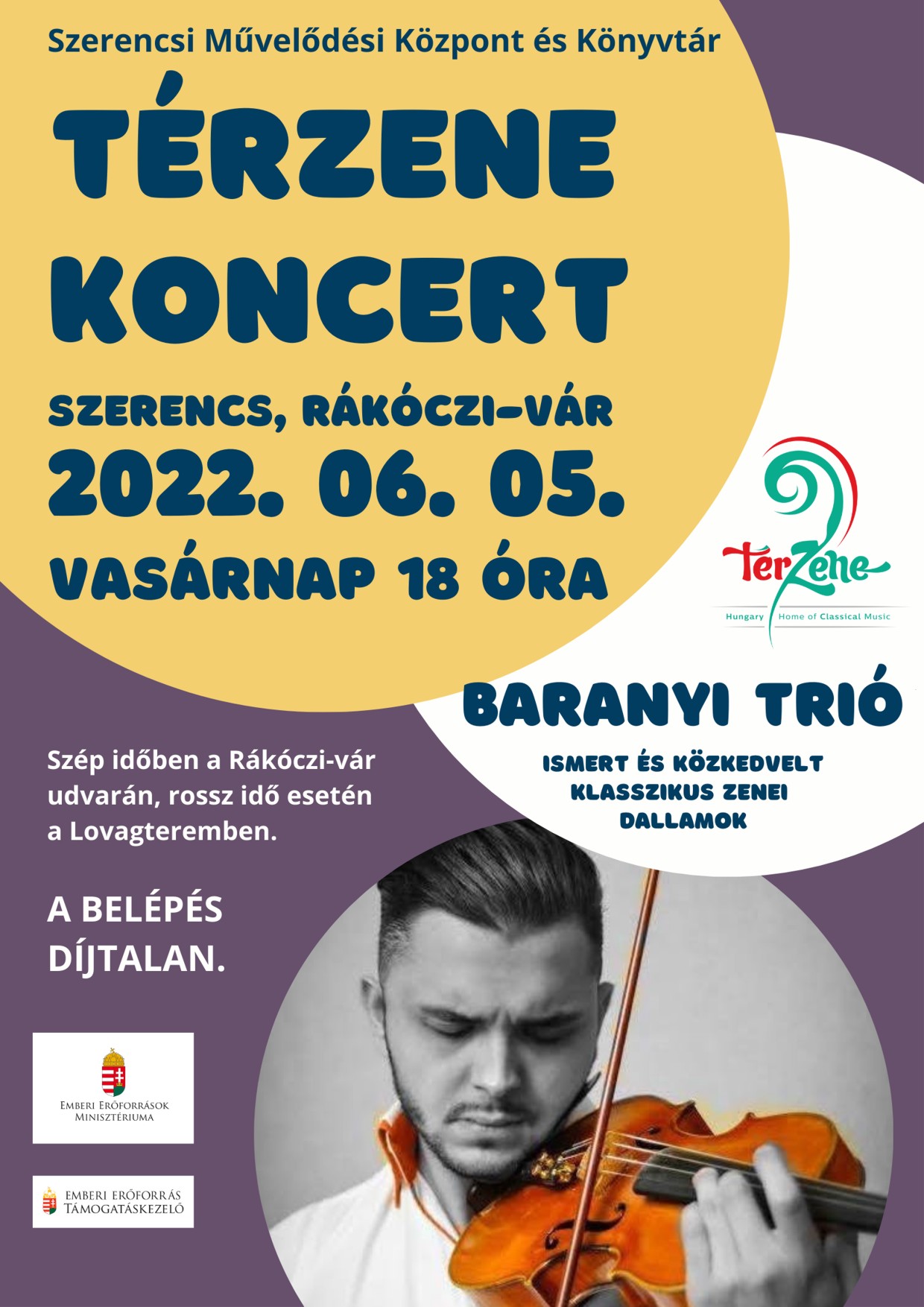 2022. június 5-én, vasárnap 18 órakorBaranyi Zoltán Trió klasszikus zenei koncertje.A belépés díjtalan.