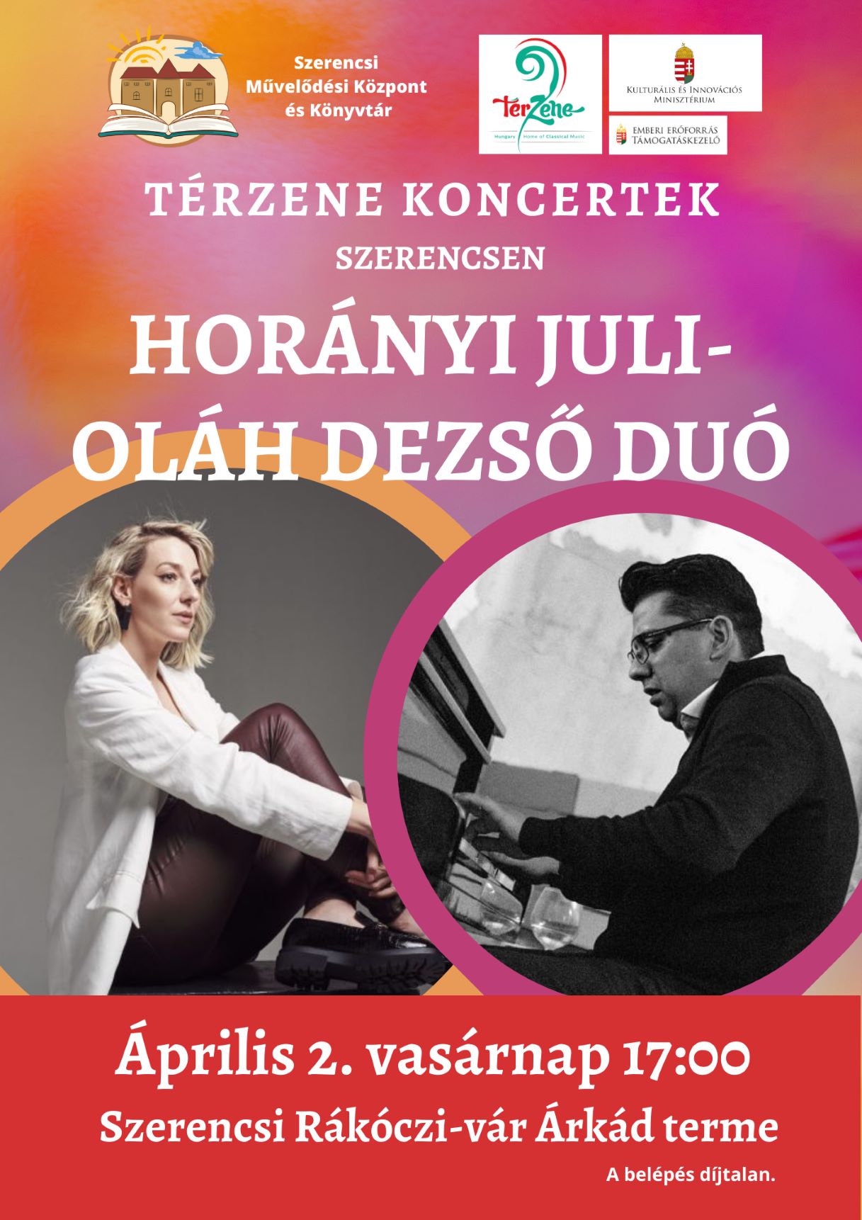 Horányi Juli énekes-dalszerző (a 2014-es X-Faktor második helyezettje) és Oláh Dezső Junior Príma-díjas zongoraművész-zeneszerző ad koncertet 2023. április 2-án, vasárnap 17 órától a Rákóczi-vár Árkád termében.