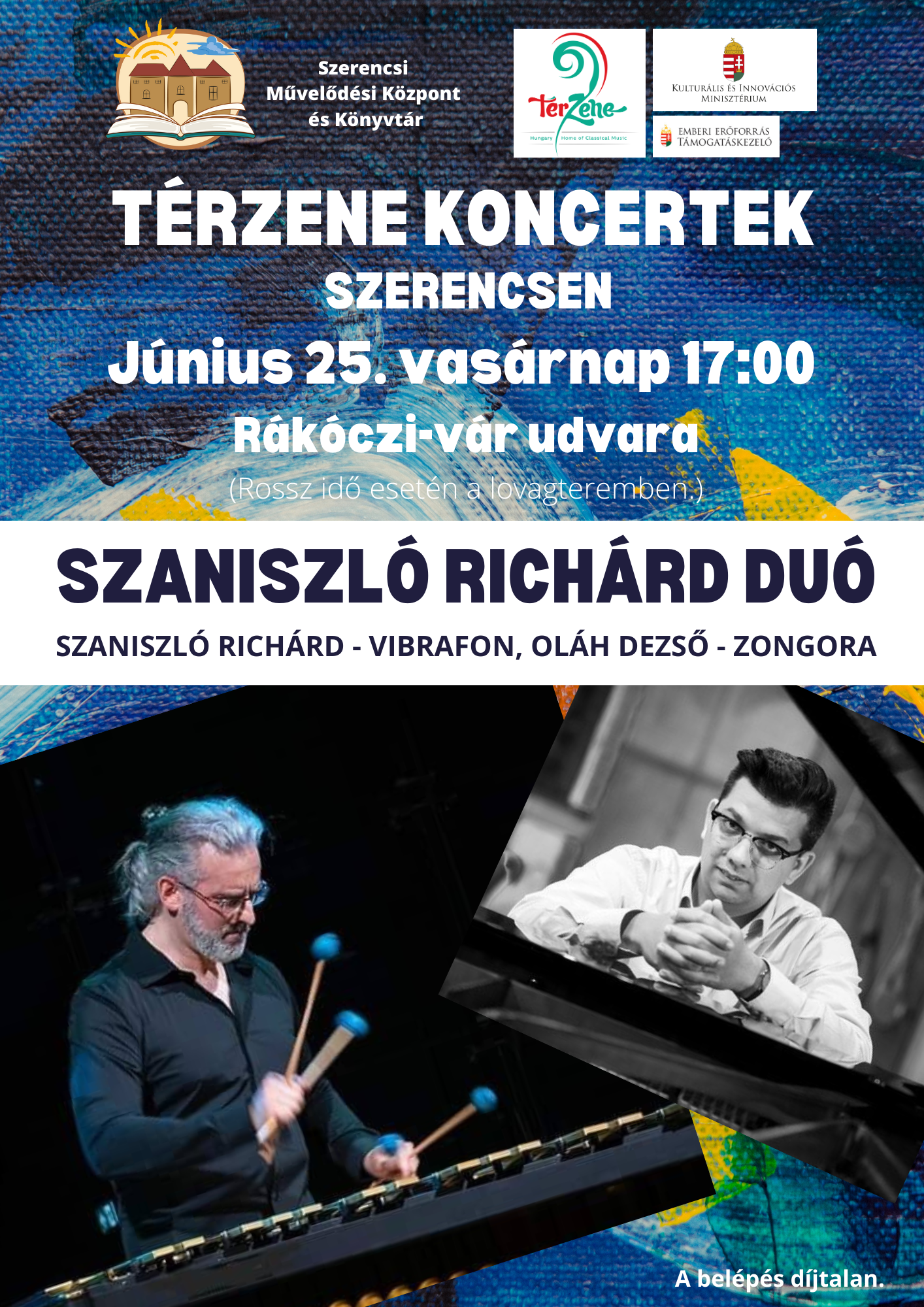 A „Térzene koncertek Szerencsen” sorozat utolsó eseményén Szaniszló Richárd vibrafonművész lép fel Oláh Dezső kíséretében.