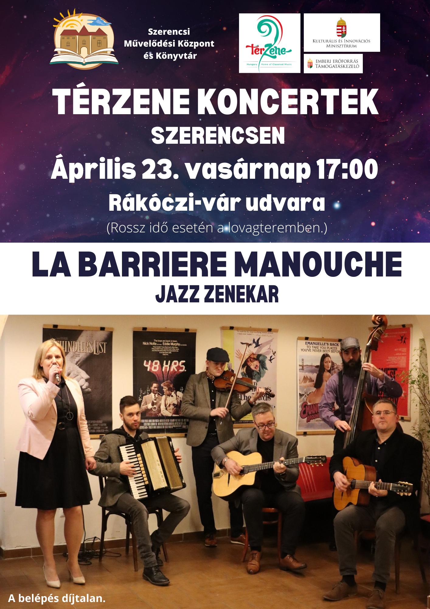 A La Barriere Manouche jazz zenekar ad koncertet 2023. április 23-án, vasárnap 17 órától a Rákóczi-vár udvarán. A belépés díjtalan.