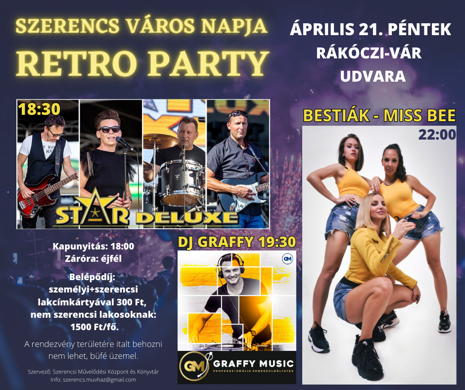 A városnapi hivatalos programok másnapján, 2023. április 21-én este egy fergeteges retro partyra várják az érdeklődőket a Rákóczi-vár udvarára.