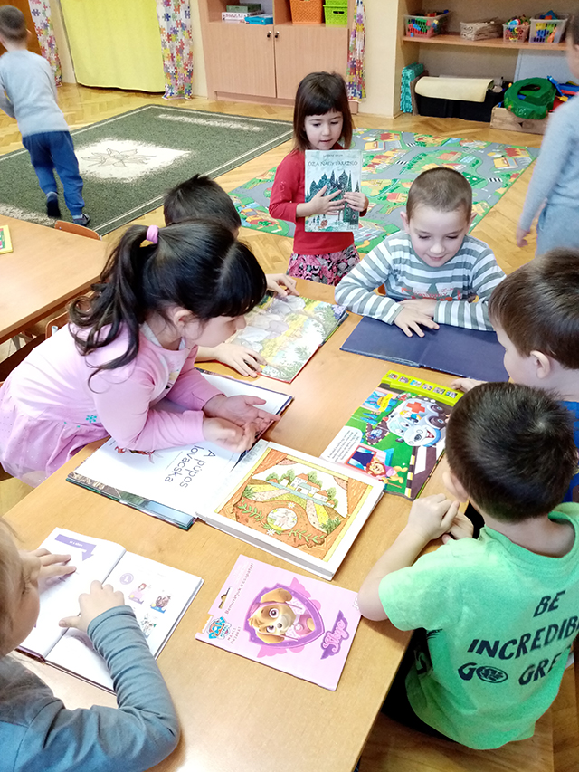 A célok megvalósítására folyamatosan törekszünk, de ezen a héten a fő hangsúly ezekre a területekre került. A gyermekek elhozták az óvodába otthonról a kedvenc mesekönyvüket, ezekről beszélgettek, nézegették és meséket és verseket hallgattak belőlük. Kártyák segítségével saját mesét is alkottunk, közben észrevétlenül fejlődött a fantázia, a szókincs és a szóbeli kifejező készség. Sajnos most nem látogathattak el a könyvtárba, így a Kazsik Marianna által készített fotók segítségével „barangolták be” a várat és az intézményt. Reviczky Beáta könyvtáros könyvcsomagot állított össze a csoportnak. A gyerekekkel közösen választották ki az óvodapedagógusok, hogy melyiket szeretnének kölcsönözni.