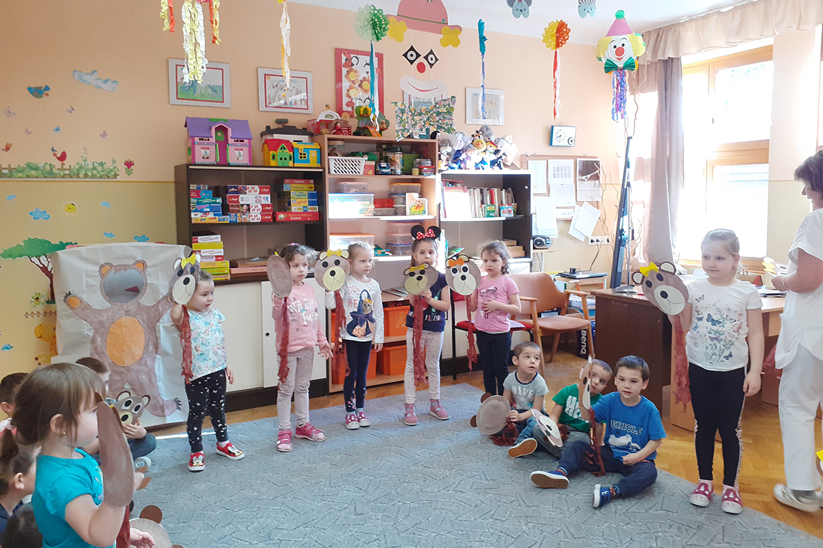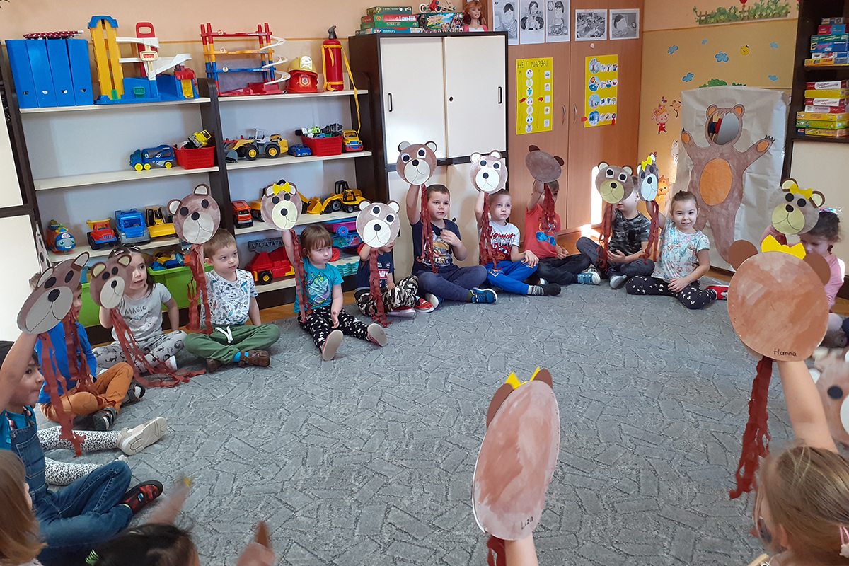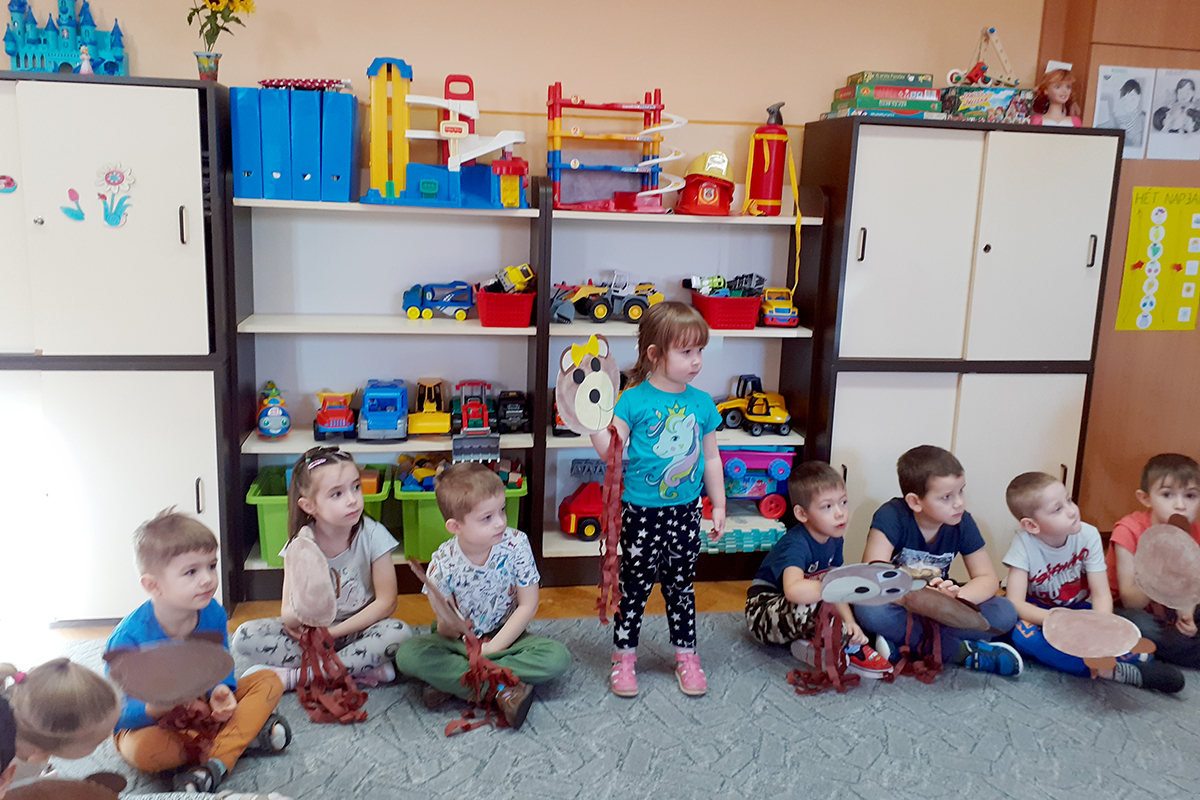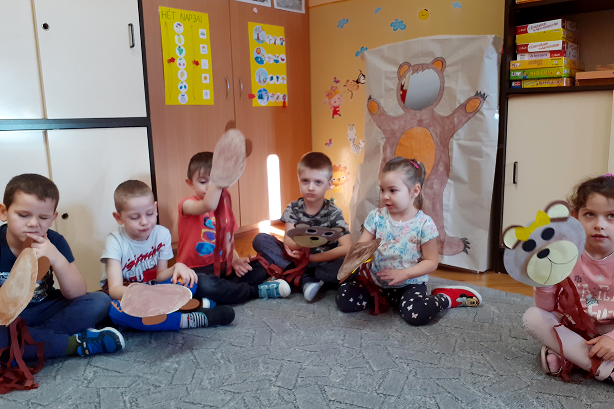Amikor tornáztunk, énekeltünk, hívtuk a tavaszt- barlangjából kibújt a medve. A játékokkal a gyerekek a saját macijukat ébresztgették, és a szülők által hozott gyümölcsökkel, teával, mézzel várták.