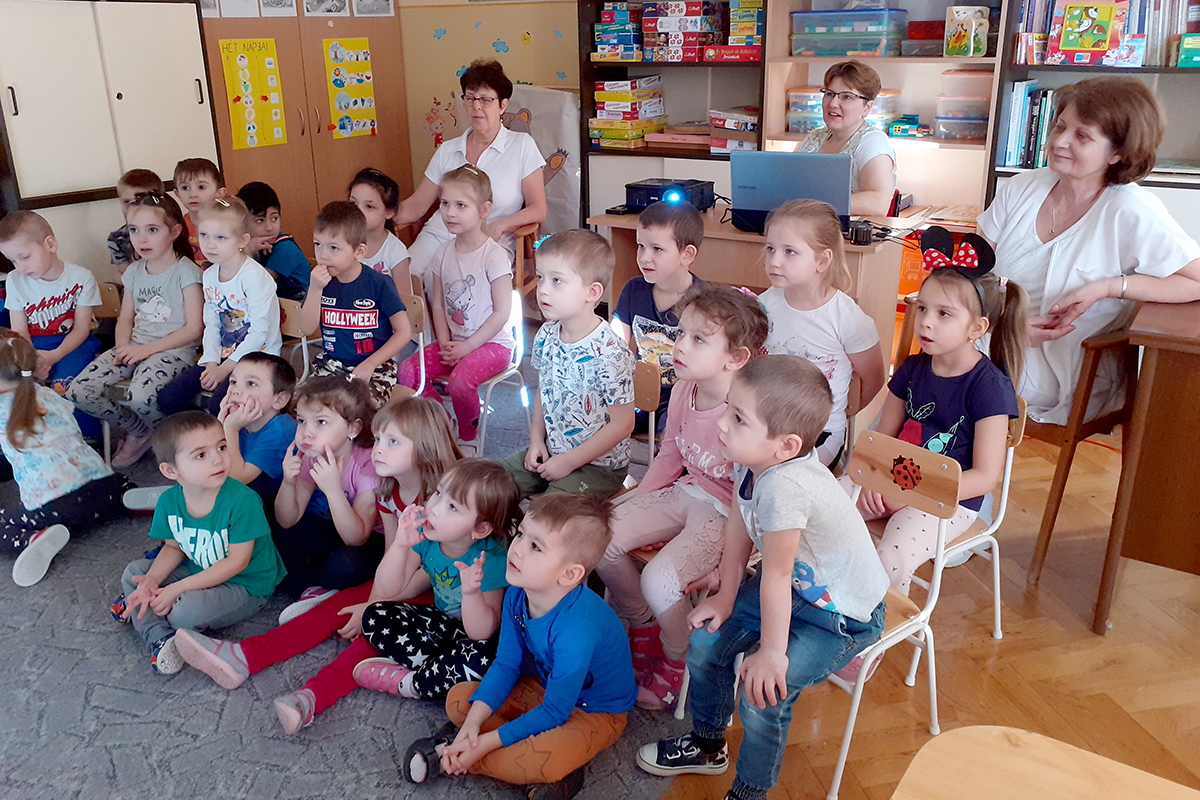 A Maci hét 4. napján mese délelőtt volt a Katica csoportban. Füles Mackó és a hóember c. mesét örömmel fogadták a gyermekek. A kis Katicák ügyesen számoltak a macikkal, sorba rendezték őket nagyság szerint. Megszámolták, hány macilány van közöttük.