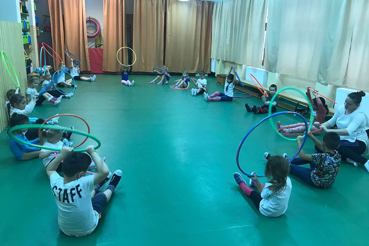 A csoport egyik kedvenc tevékenységi formája a mozgás. Minden héten a tornateremben fejlesztjük a kicsik mozgás koordinációját, változatos, színes eszközökkel. A héten a hullahopp karika volt a tevékenység középpontjában.