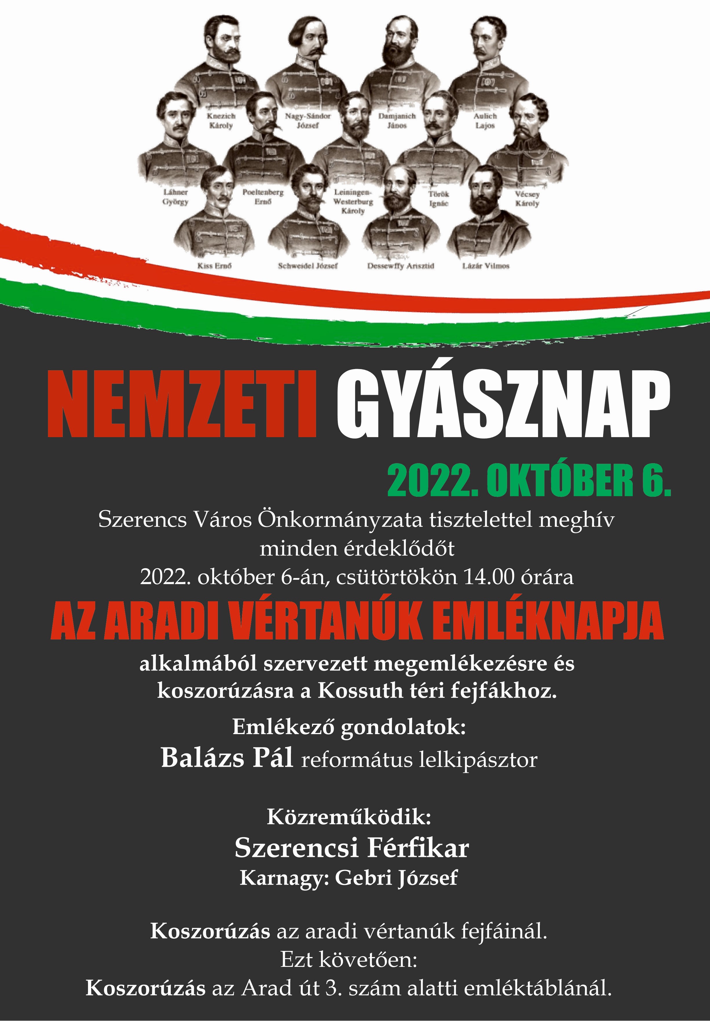 Közreműködik: Szerencsi Férfikar. Karnagy: Gebri József