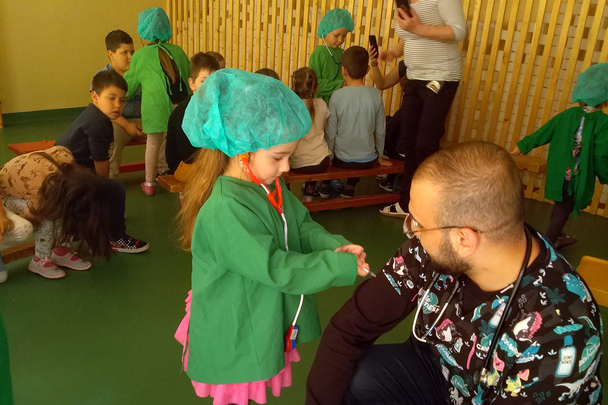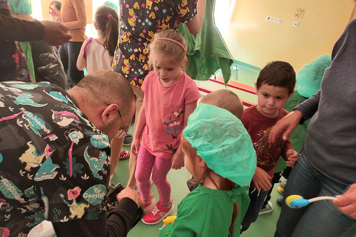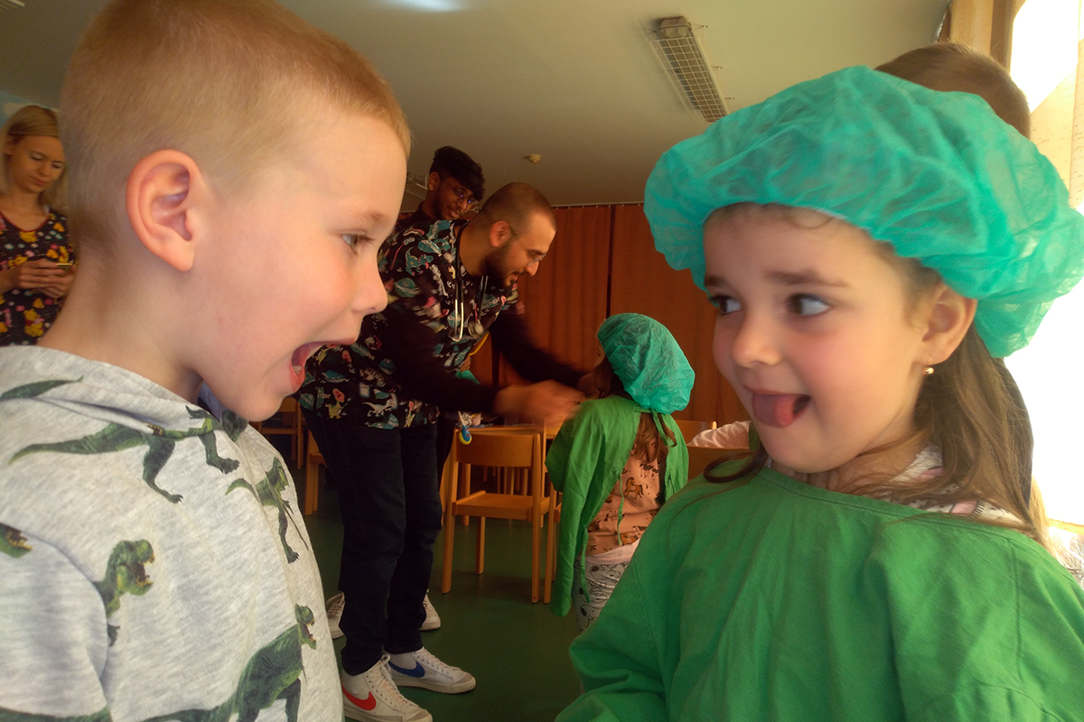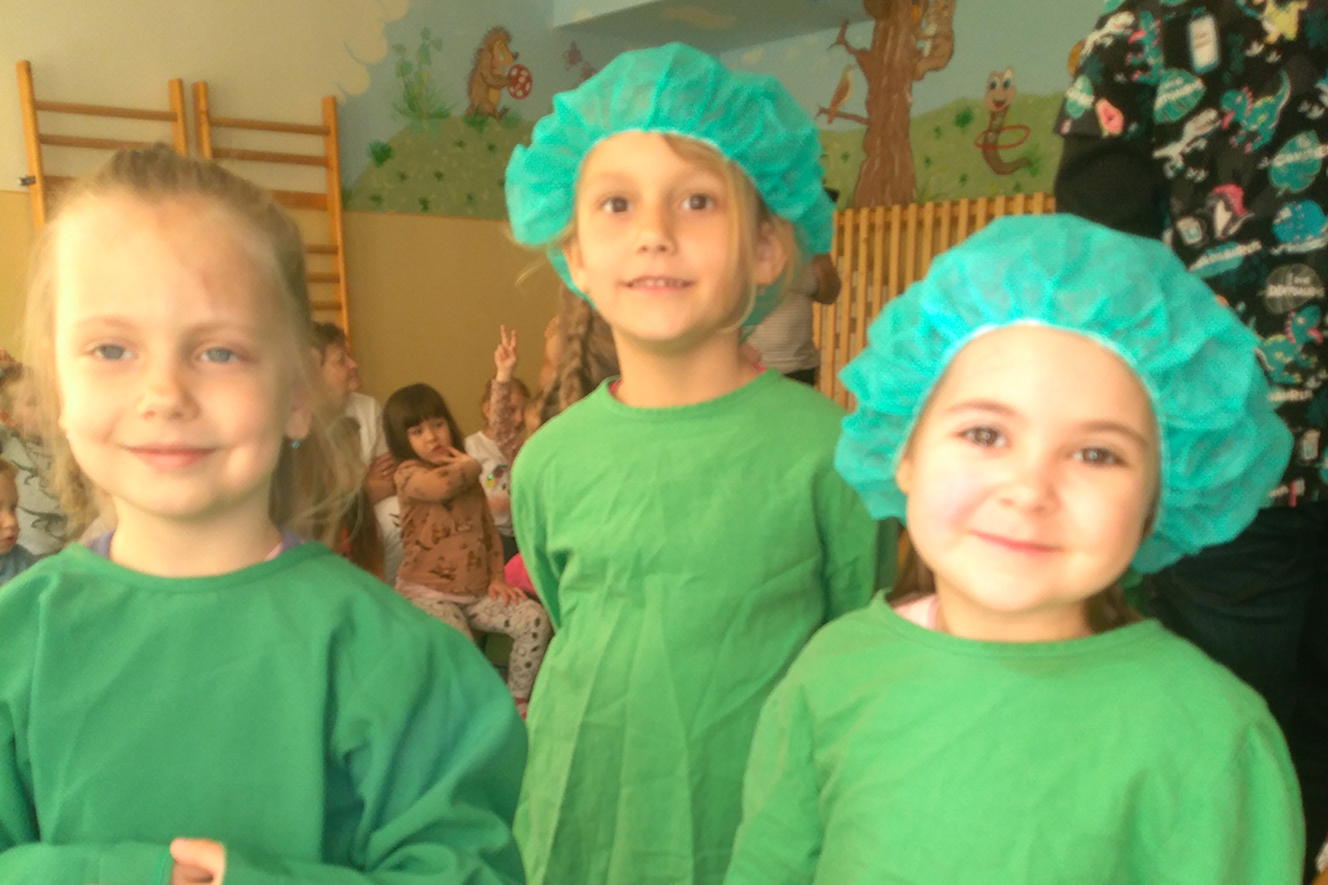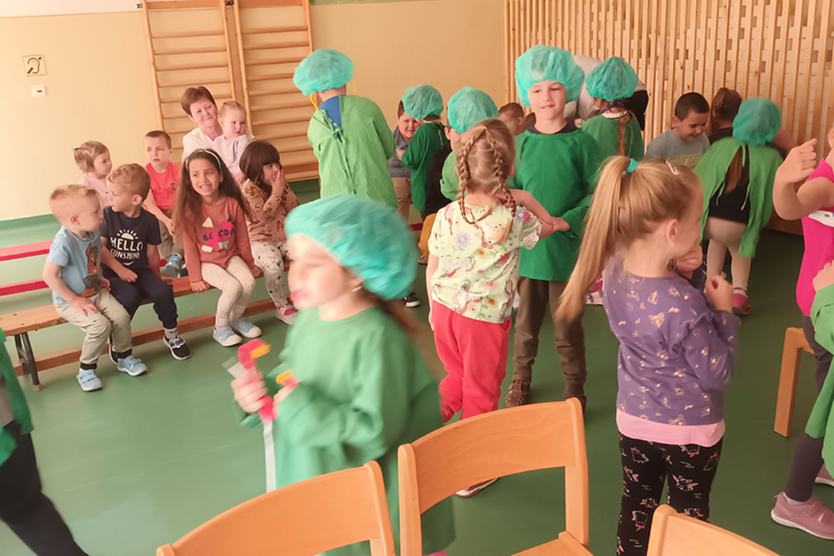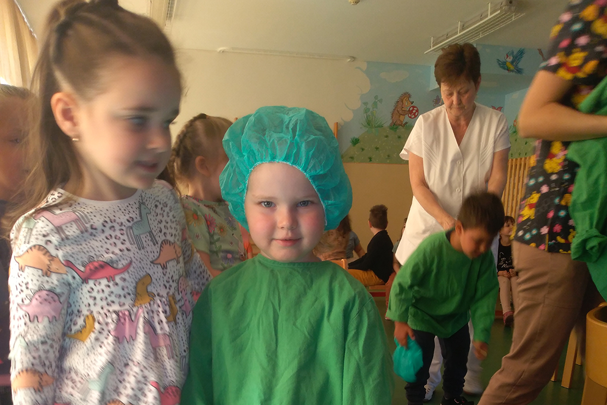 Játékos formában interaktív délelőttön a gyermekek megismerhették az emberi szervek működésének fontosságát, majd felvehették a számukra készített műtős ruhát, szájmaszkot.