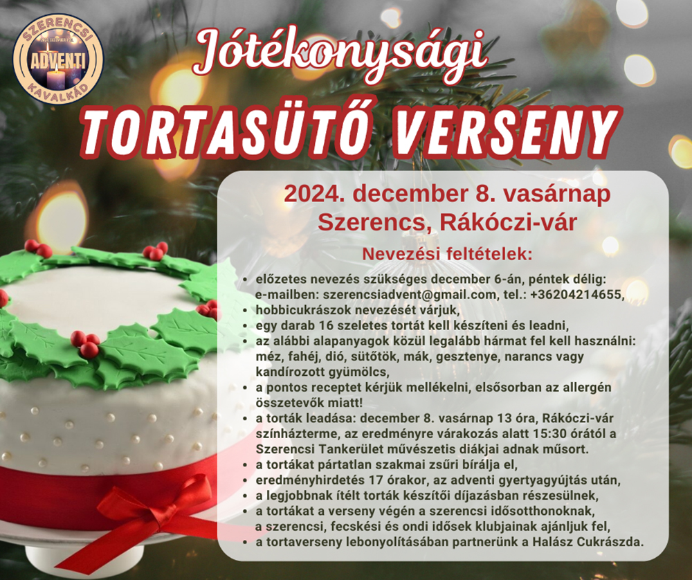 – a torták leadása: december 8. vasárnap 13 óra, Rákóczi-vár színházterme,