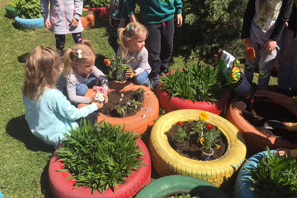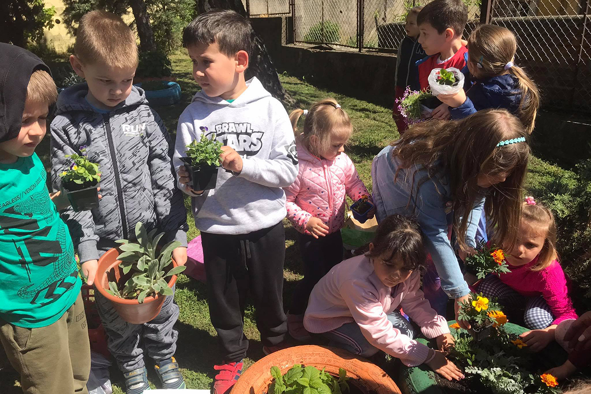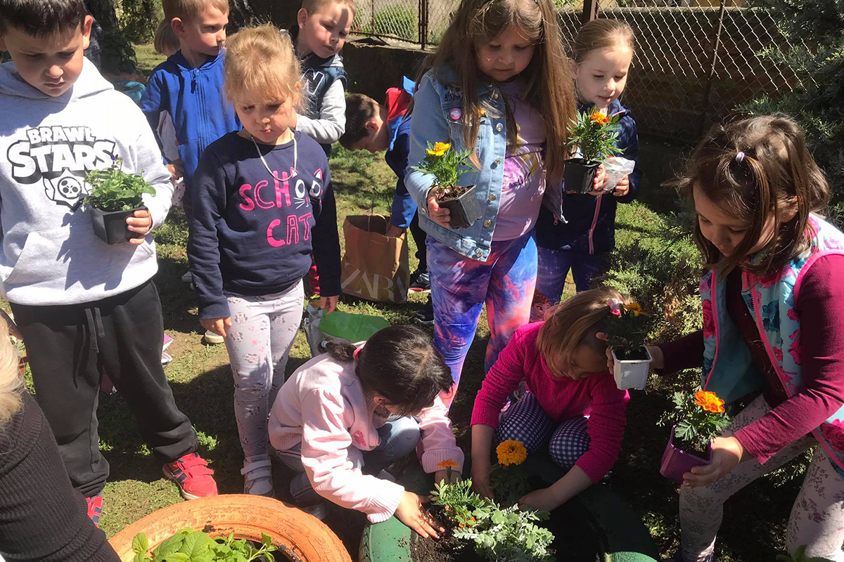 A Madarak és fák napja alkalmából a Napsugár épület óvodásai közösen virágokat ültettek, melyeket a szülők biztosítottak.