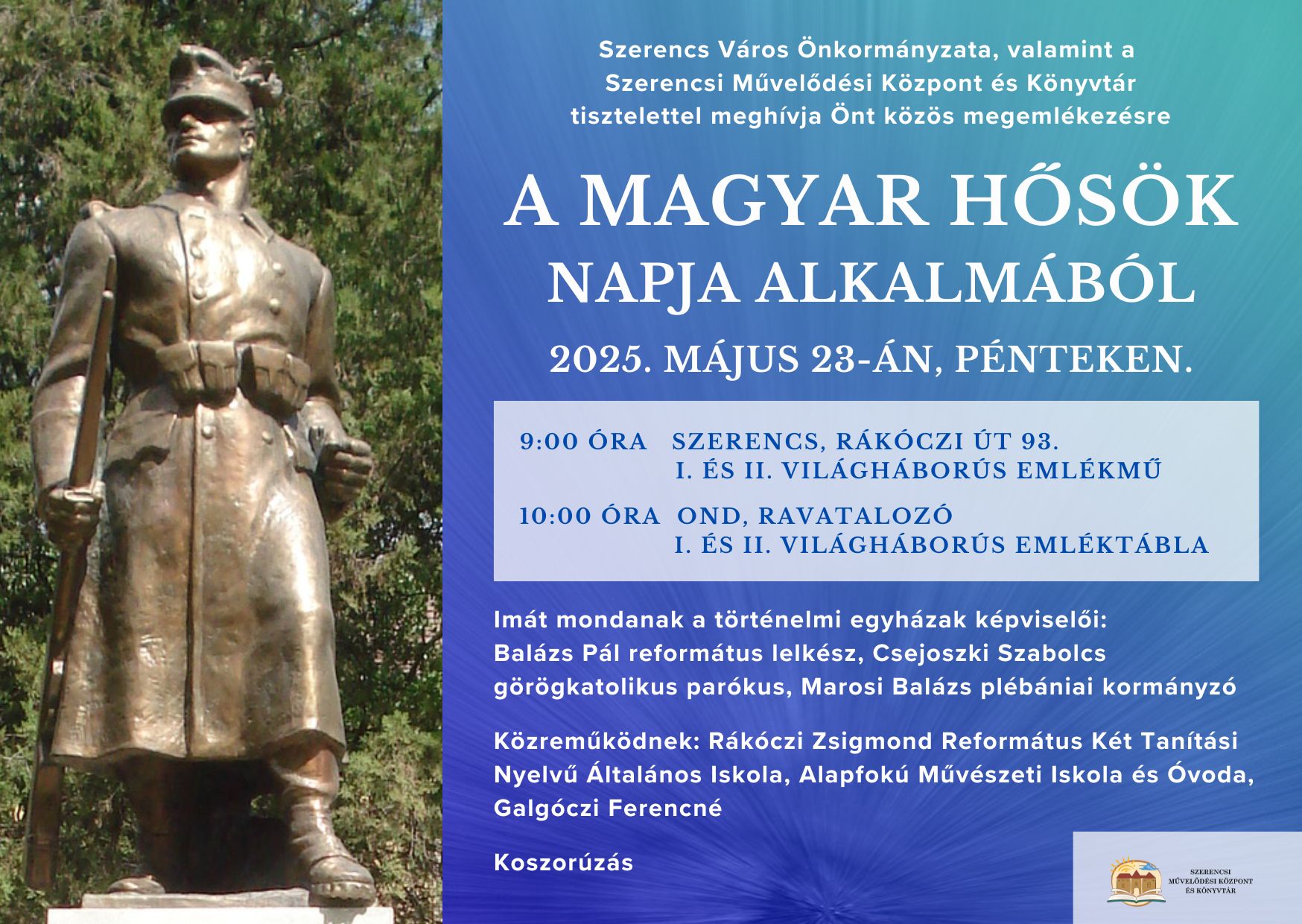 9 óra: Helyszín: Szerencs, I. és II. világháborús emlékmű a Rákóczi út 93. szám előtt (katonaszobor)