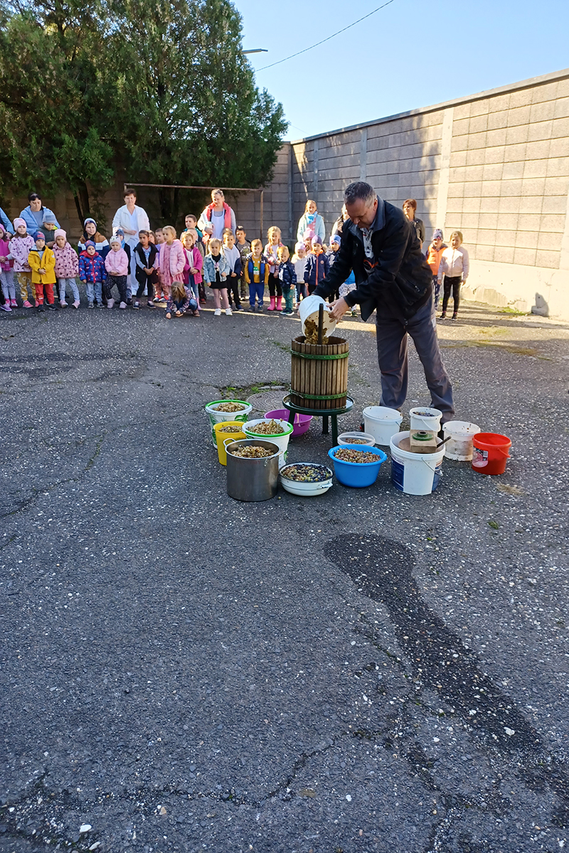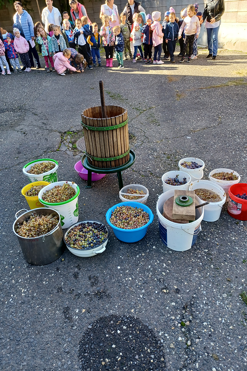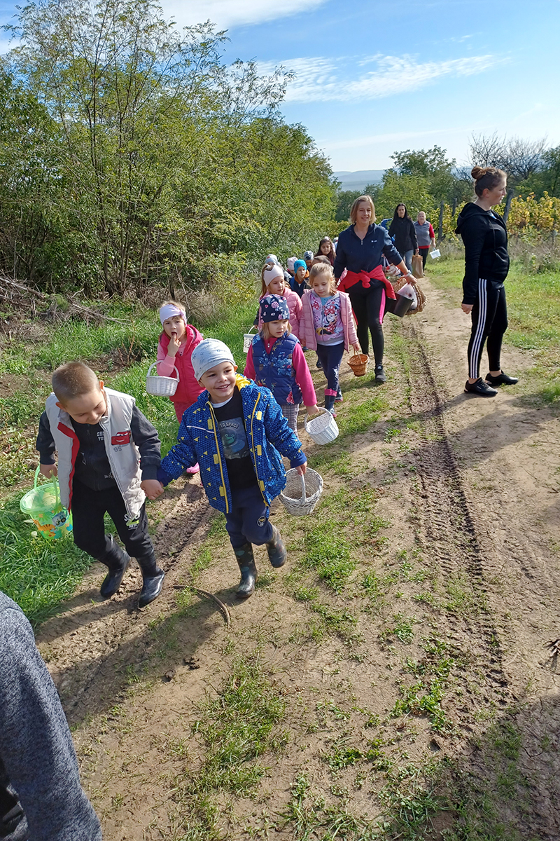 A programok szervezésekor örömmel fogadjuk a szülői segítséget is. A szüreti hét keretében így jutottunk el ebben az évben is Ondra, ahol élvezhették a nagycsoportosok a helyaljai szüret hangulatát.