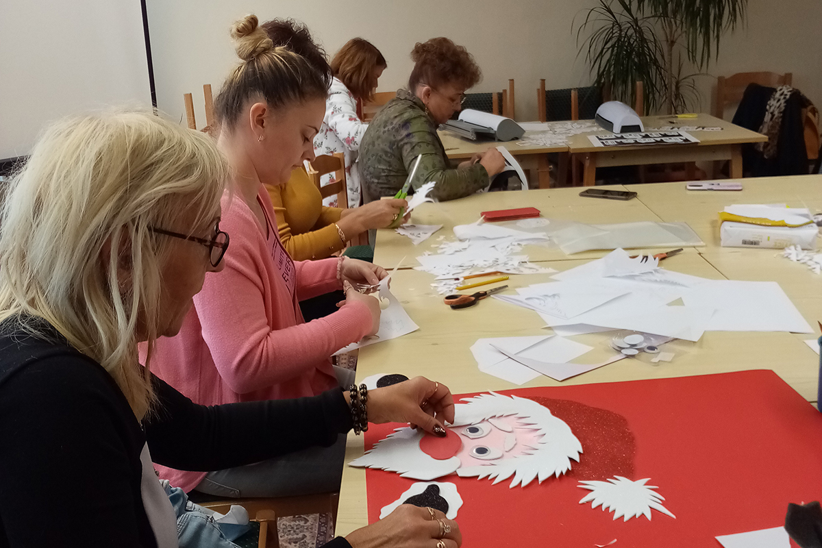 Az ünnepkörökhöz kapcsolódó dekorációkat munkaközösségi foglalkozás keretén belül készítettük el, illetve az „Így tedd rá” zenei mozgásos továbbképzésen tanultakat, a gyermektánc munkaközösség vezető megosztotta a kollégákkal.
