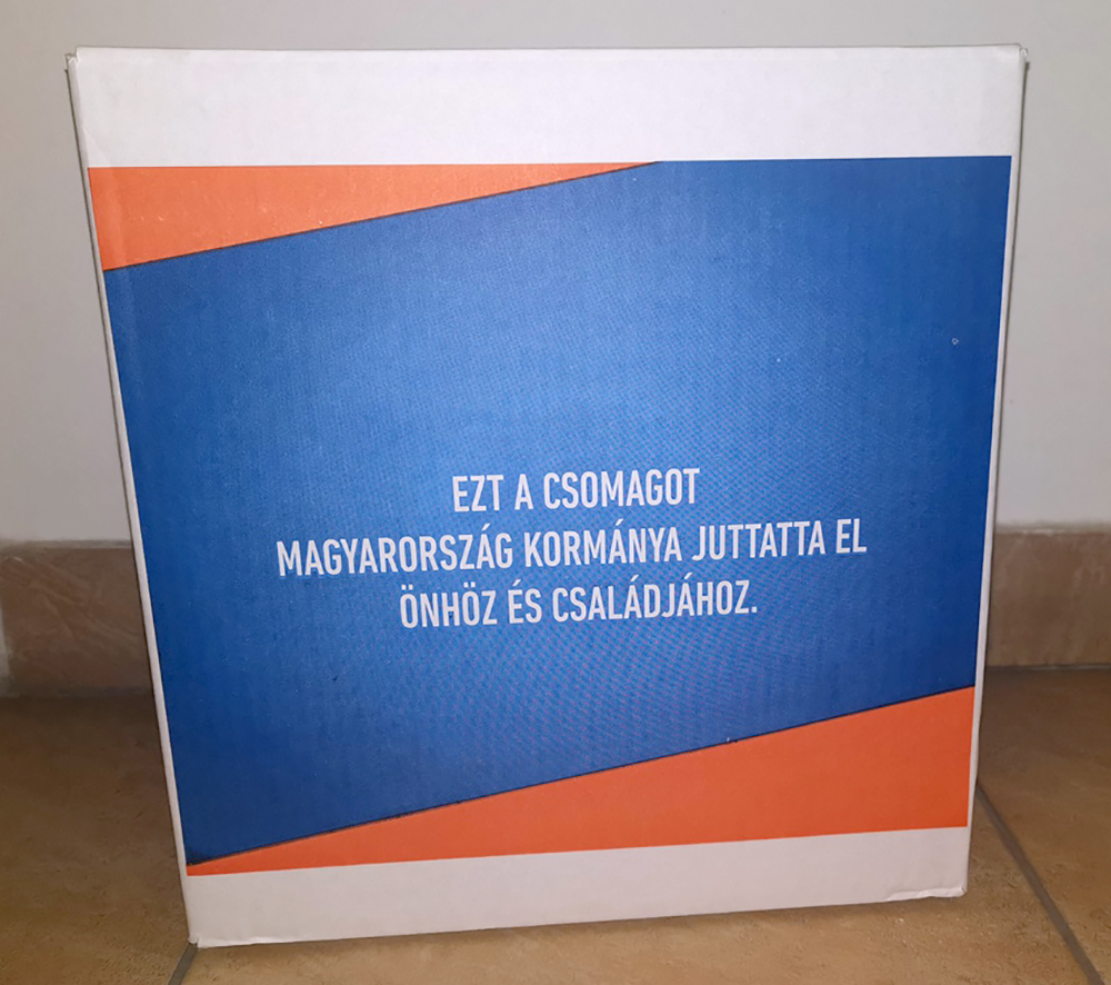 A Rászoruló Személyeket Támogató Operatív Program keretében a tartós élelmiszereket egy előre csomagolt kartondobozban vehetik át a jogosultak.