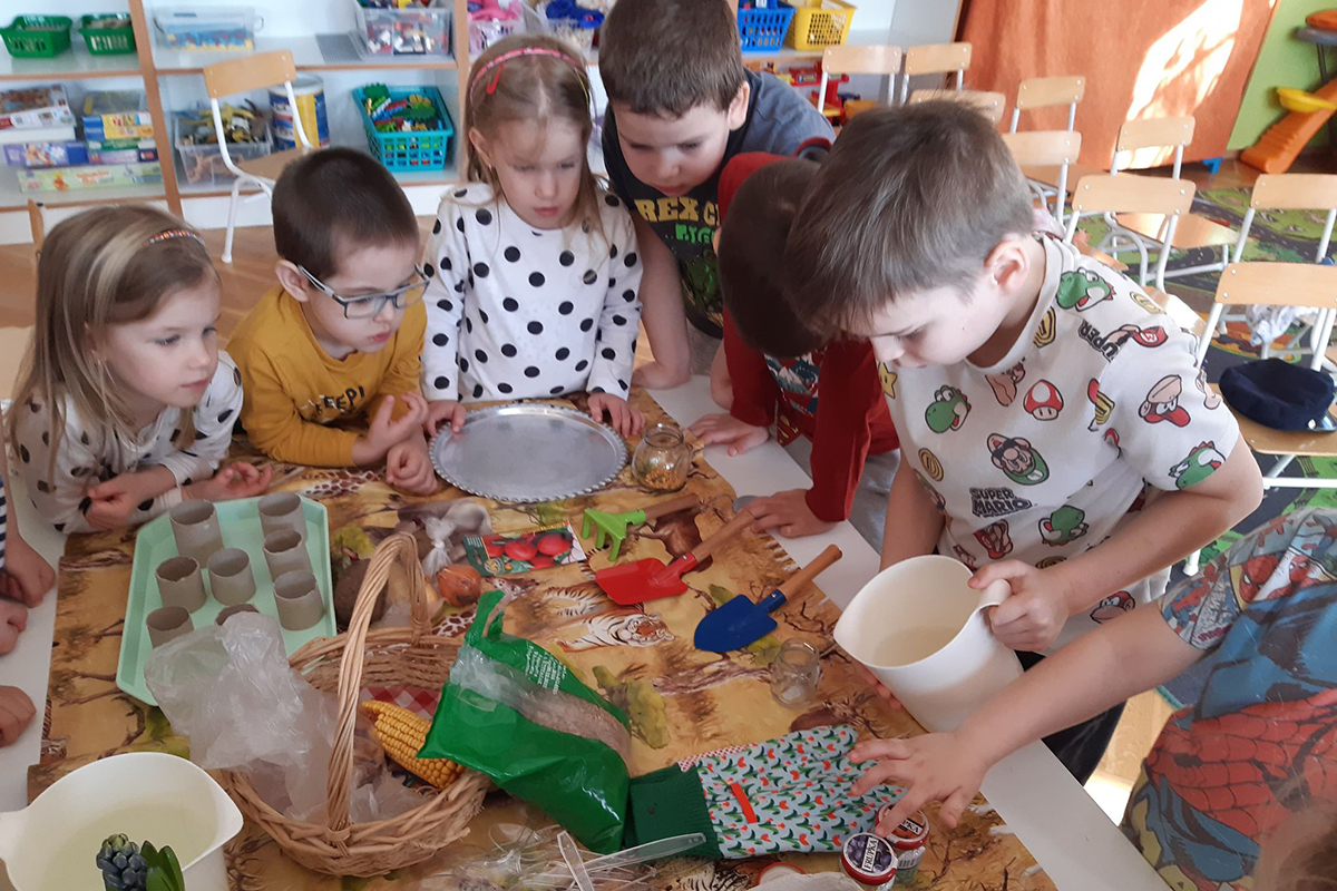 A Napocska csoportban a héten a TAVASZ jegyében hajtatunk, csíráztatunk.