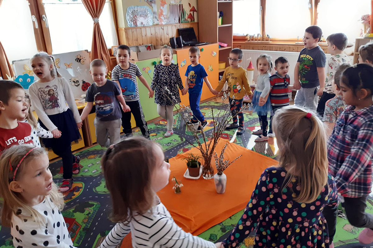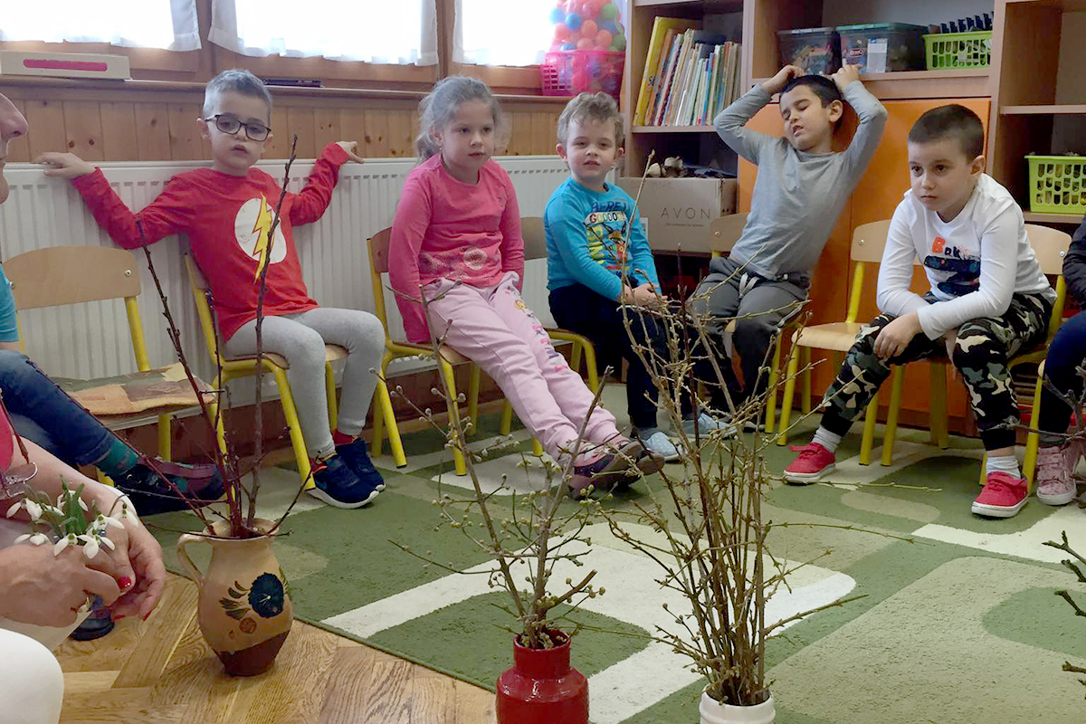 Közeleg a tavasz témahetünkön a tavasz első virágaival ismerkedtünk sétánk során a Micimackó csoportban. Ismerkedtünk a tavaszi munkálatokkal ültettünk csiráztattunk és ágakat hajtattunk! Vizuális tevékenységeink során barkaágat és aranyesőt festettünk. Vidám tavaszi dalos játékokkal csalogattuk elő a jó időt!