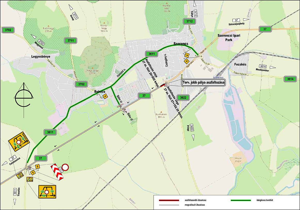 A kivitelező tájékoztatása szerint a 37-es számú főút 25+850 – 27+182 km szelvények között a Bekecsi körforgalom és a Szerencsi körforgalom (MOL kutaknál) a jobb pályán (Szerencs felé) kopóréteg építését szeptember 27-én kedden tervezik.