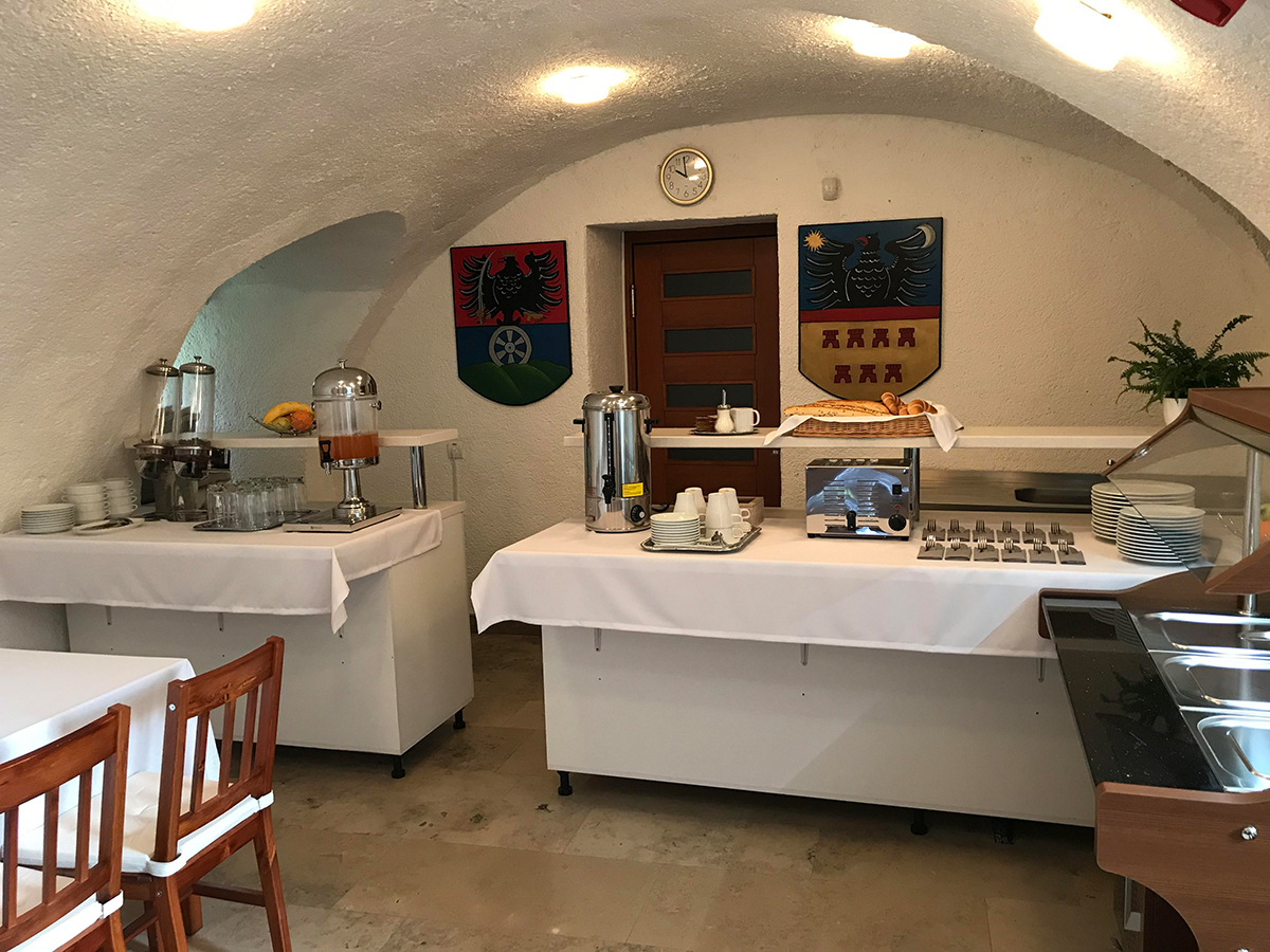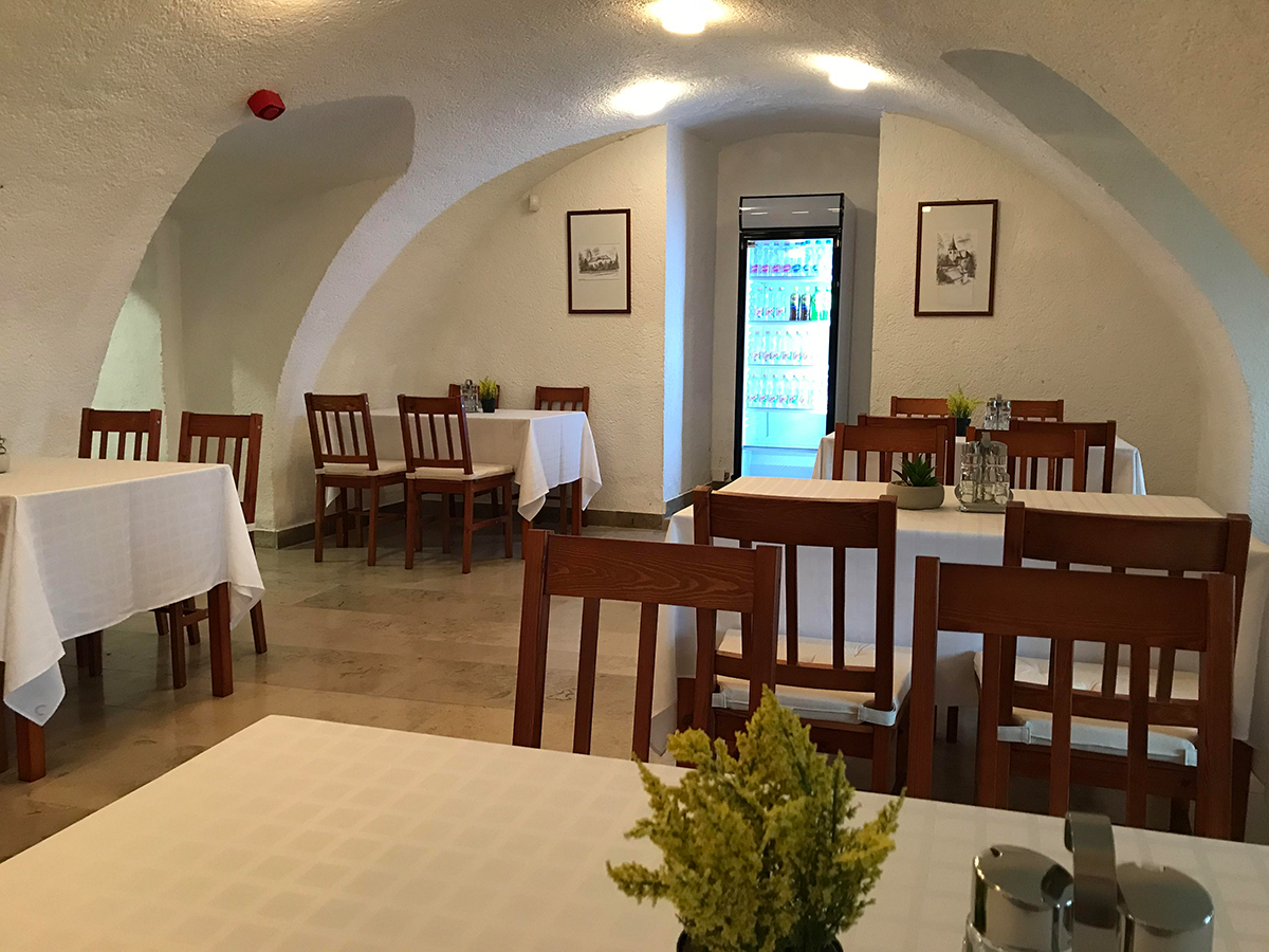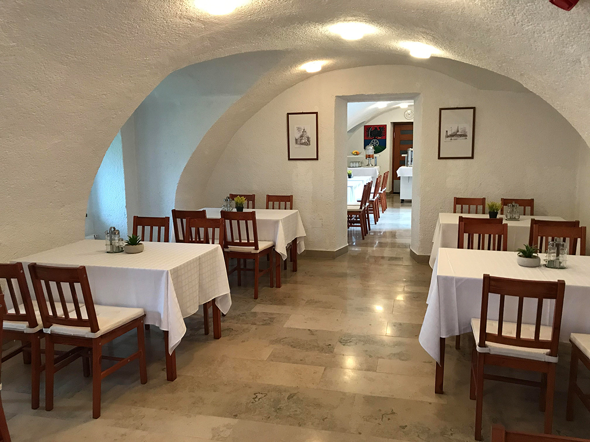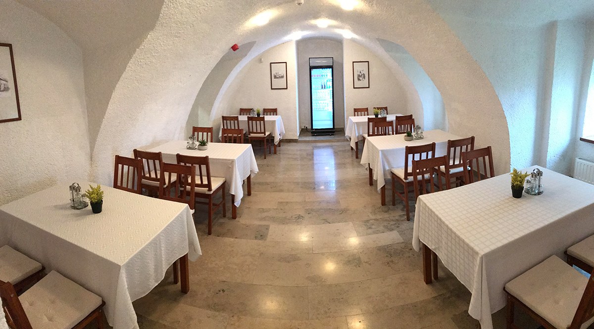 Az emeleti éttermet követően a Huszárvár Hotel földszinti éttermét mutatjuk be, amely szintén kiválóan alkalmas családi vagy céges rendezvény, összejövetel lebonyolítására. Létszám függvényében a két helyiség együttesen is bérelhető. A terem 50 m2, maximum 40 fő befogadására képes, ahol az alap terembérlésen kívül hideg és meleg étkezést is tudunk biztosítani előzetes egyeztetés alapján.