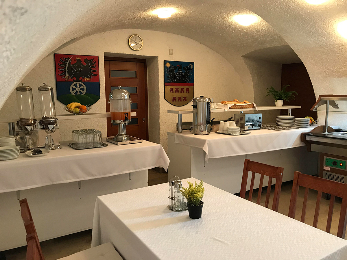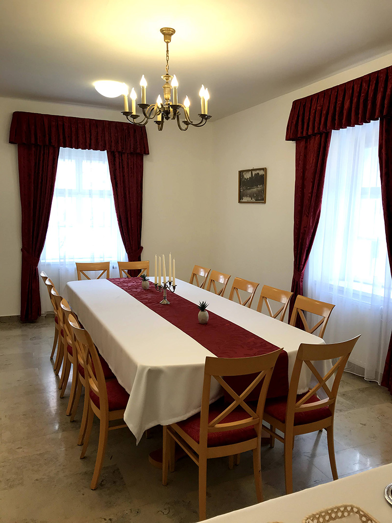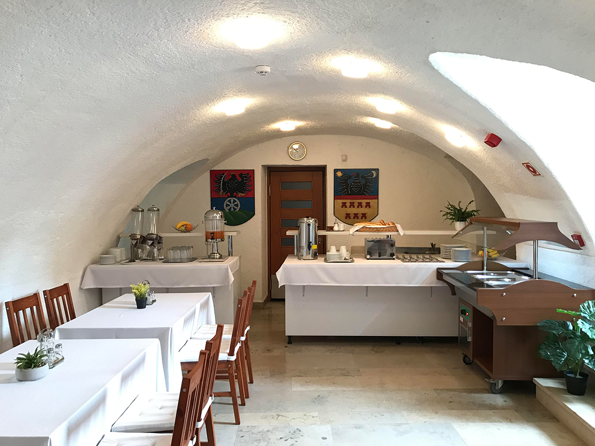 Az emeleti éttermet követően a Huszárvár Hotel földszinti éttermét mutatjuk be, amely szintén kiválóan alkalmas családi vagy céges rendezvény, összejövetel lebonyolítására. Létszám függvényében a két helyiség együttesen is bérelhető. A terem 50 m2, maximum 40 fő befogadására képes, ahol az alap terembérlésen kívül hideg és meleg étkezést is tudunk biztosítani előzetes egyeztetés alapján.