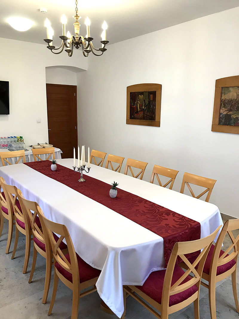 Huszárvár Hotel Konferencia terme kiváló lehetőséget nyújt maximum 14 fős üzleti célú tárgyalások, megbeszélések, tréningek, szemináriumok, illetve konferenciák megrendezésére. (Nagyobb létszám esetén több terem együttesen is bérelhető.) Terembérléshez kapcsolódóan vállaljuk étel-ital bekészítését, valamint konferenciatechnikai eszközök biztosítását igény szerint.